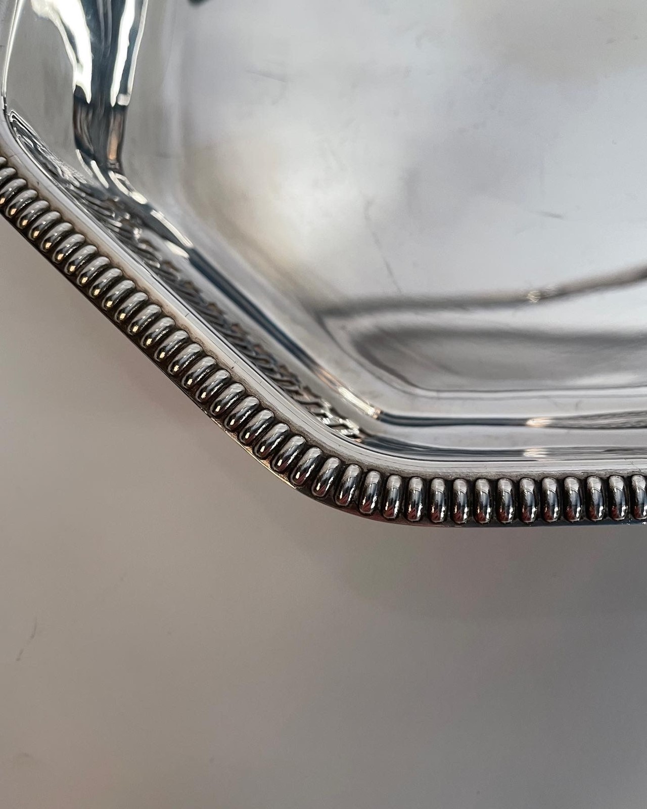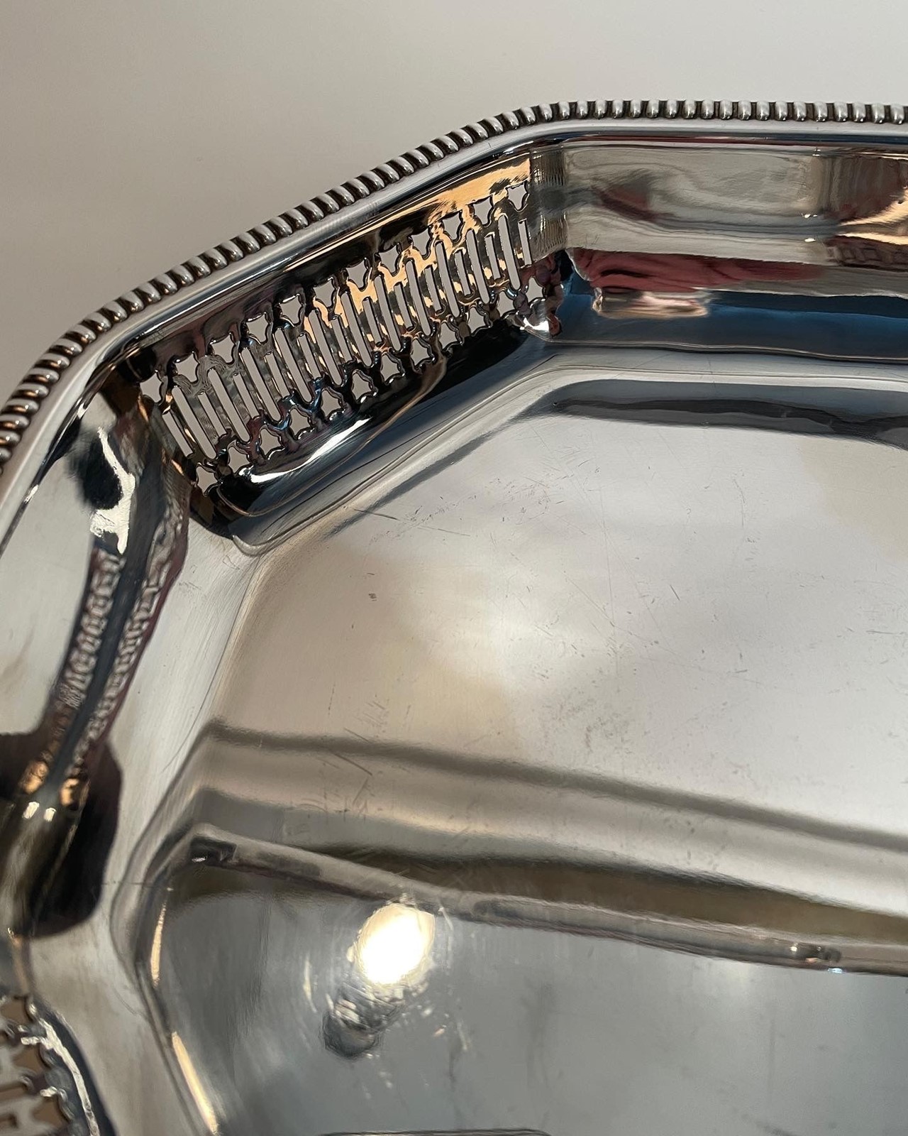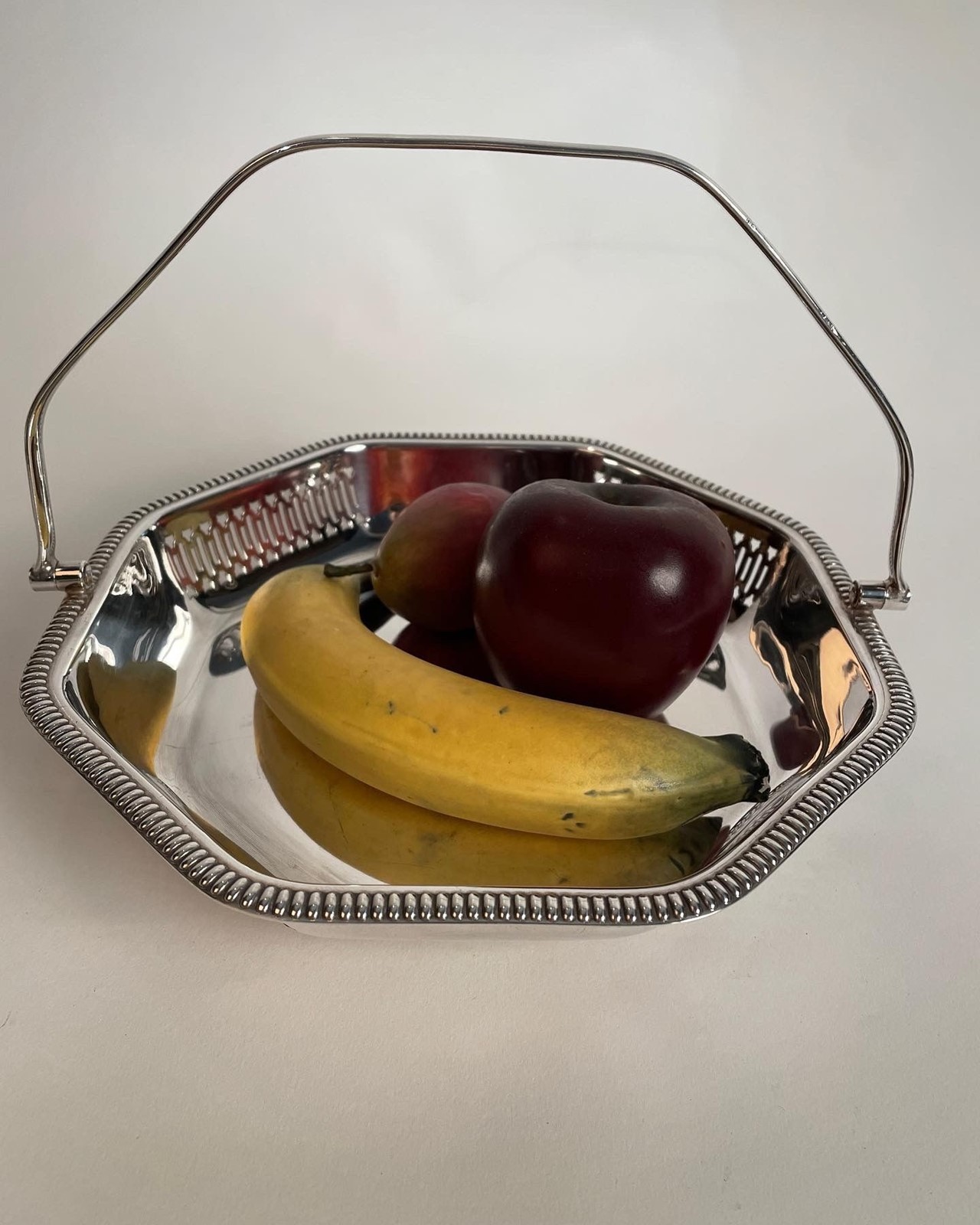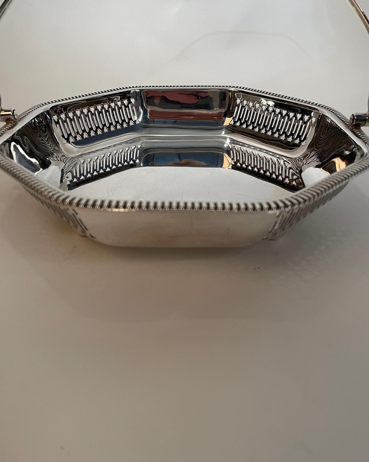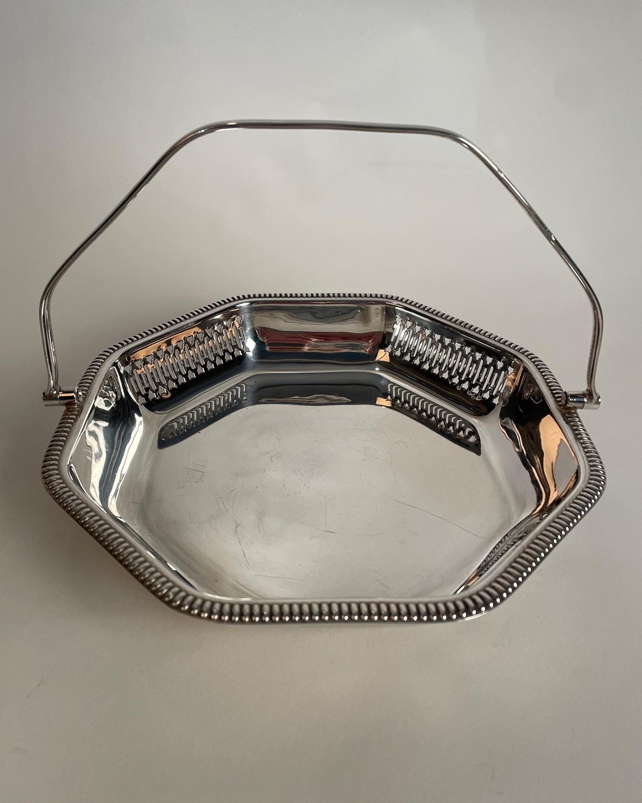 Silver plated fruit or bread basket, with pierced decoration and swing handle