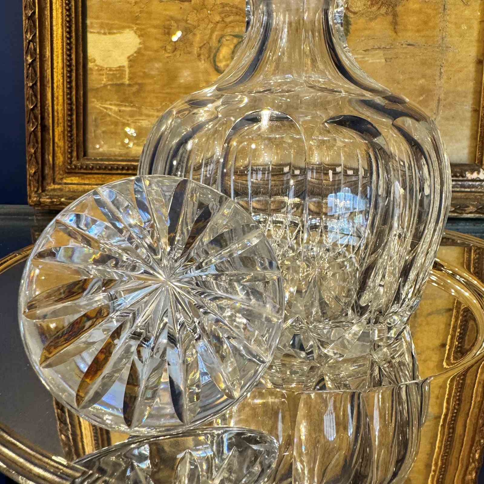 Until the 1670s wine was served at the table in jug or green glass bottle. The decanter started to appear after 1670 and usually took a jug form, it wasn't until the middle of the 1700s that decanters were seen in a form we are more familiar with now.