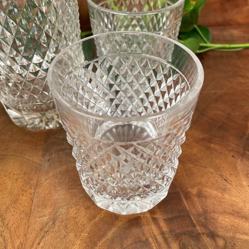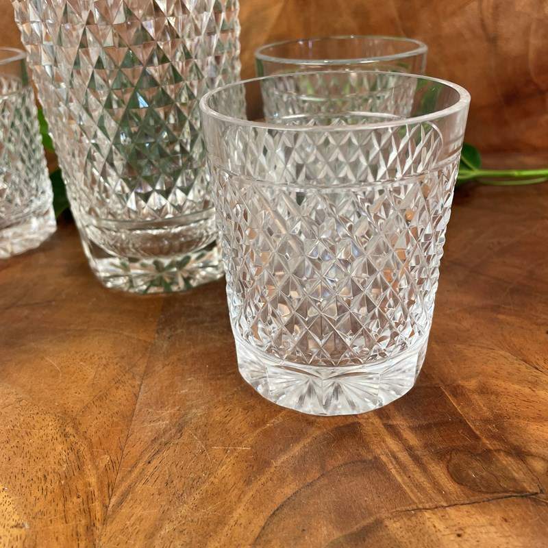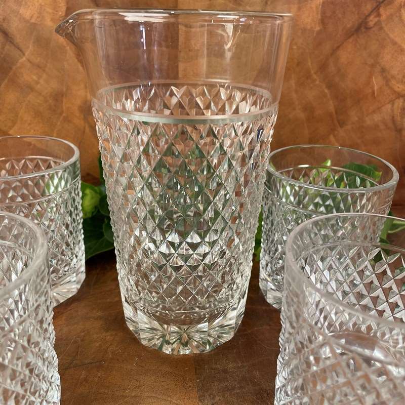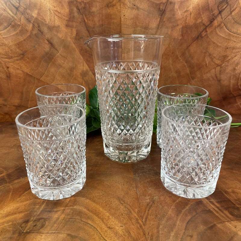 Val St Lambert water jug and 4 matching tumblers. Very stylish with hobnail cutting.