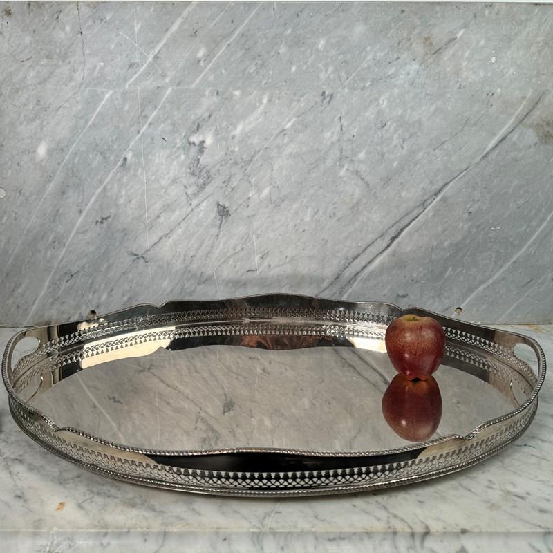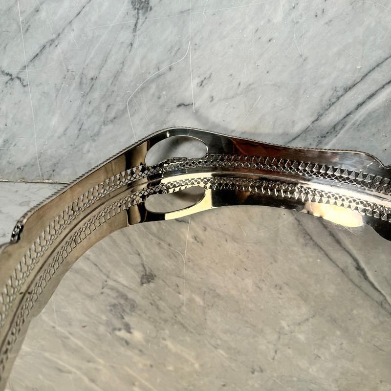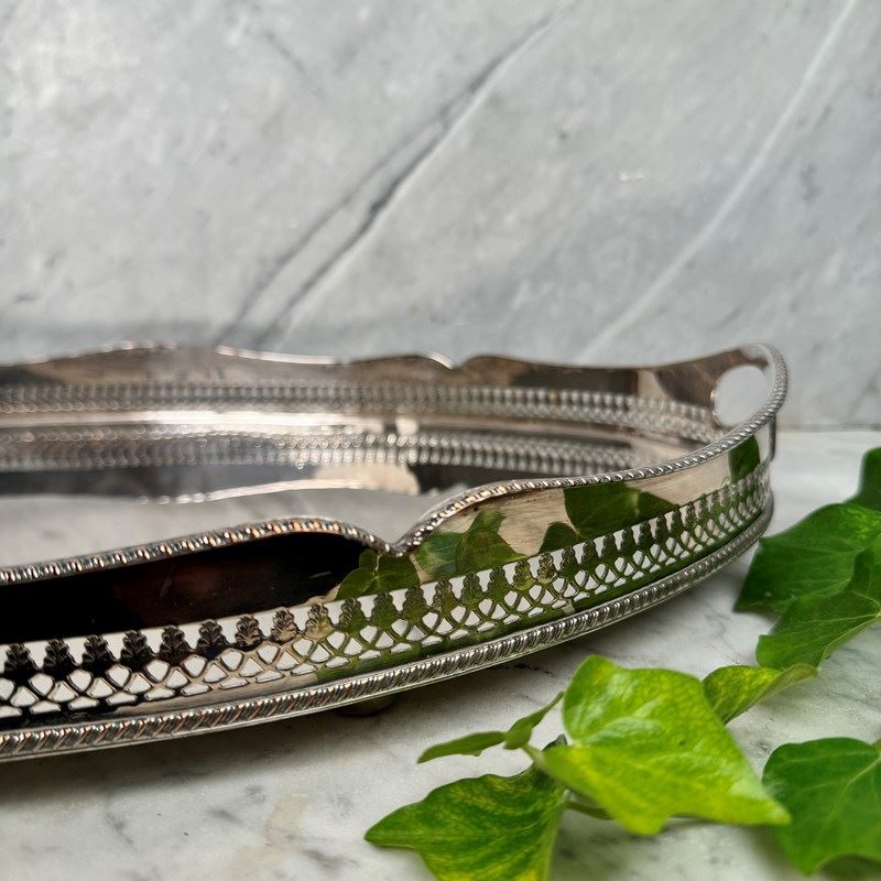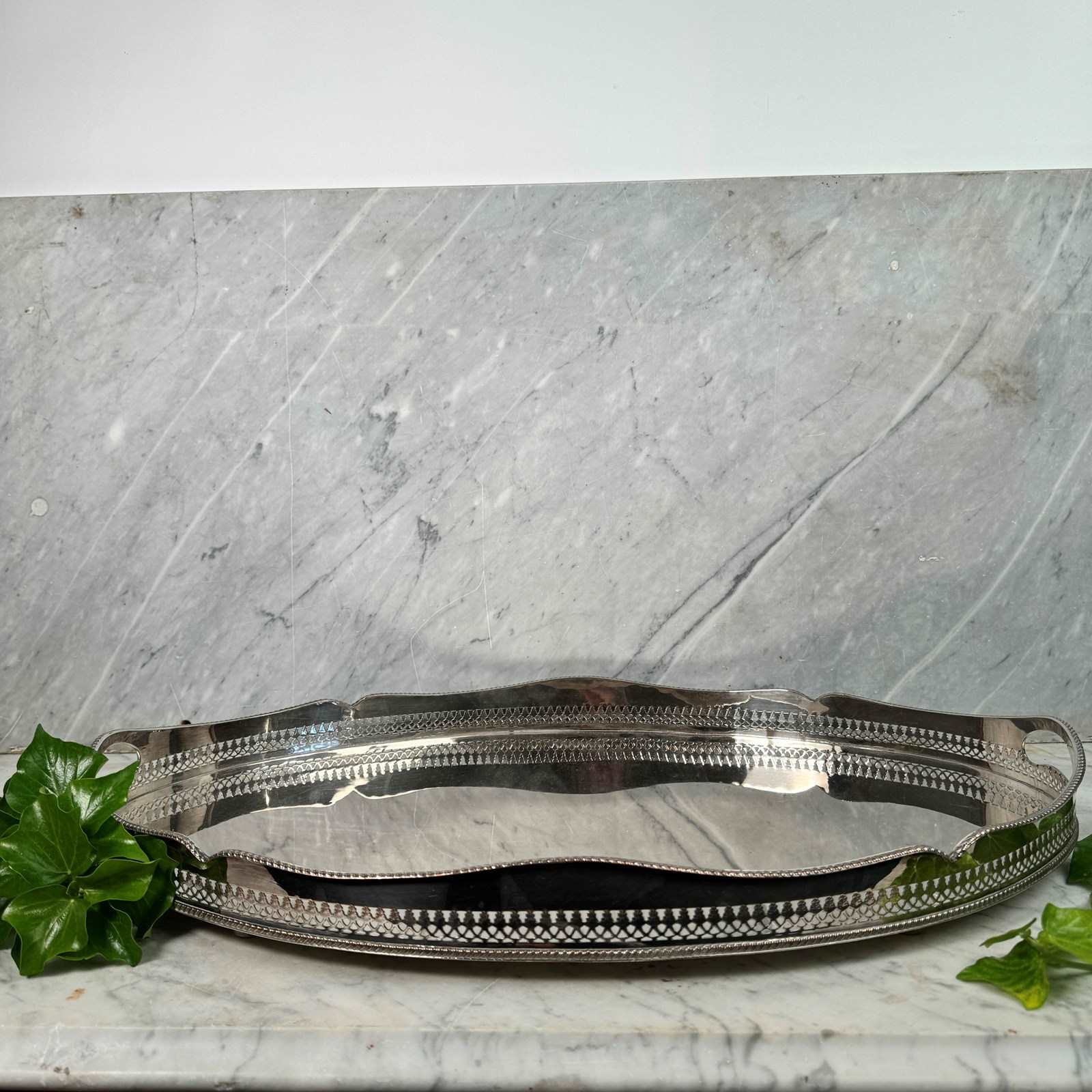 A large two handled silver plated gallery tray with pierced work to gallery. Very smart tray and great size and weight.