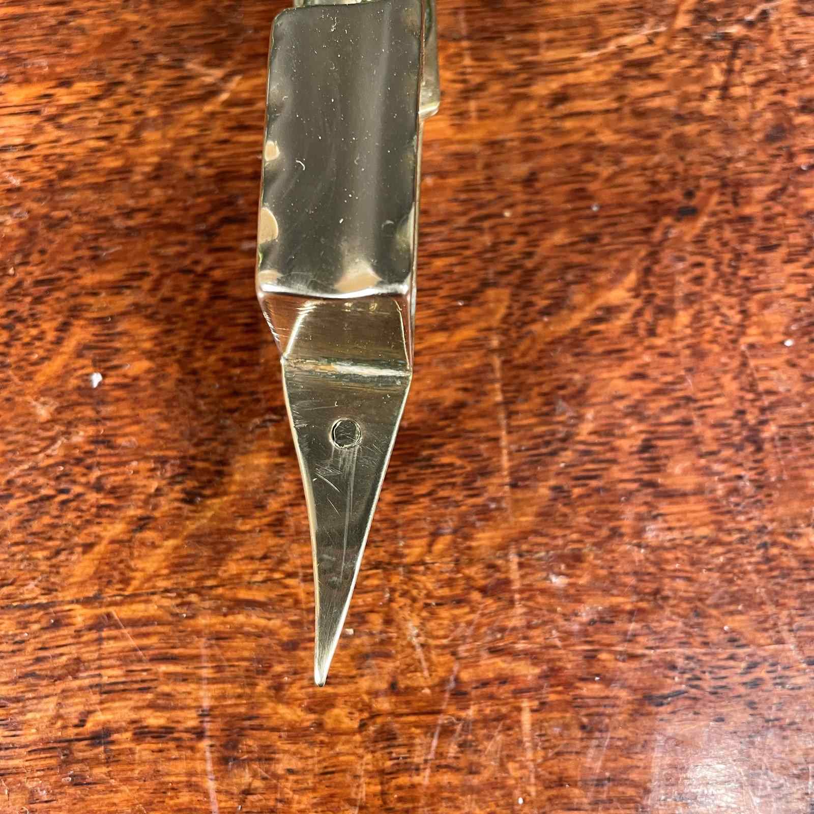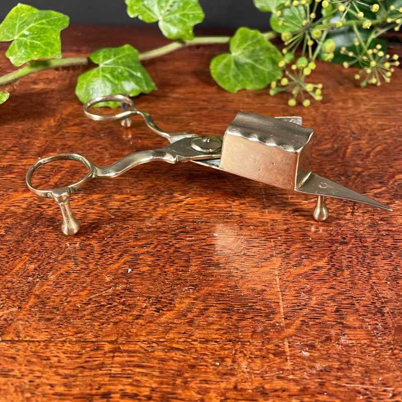 A Victorian brass wick trimmer of candlesnuffer of a scissor design.