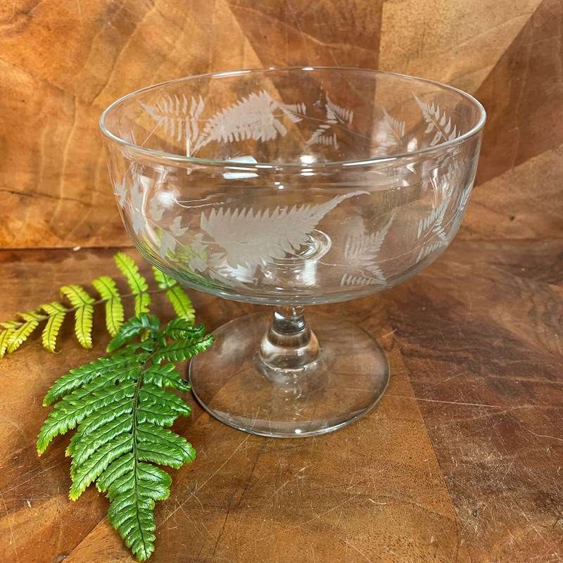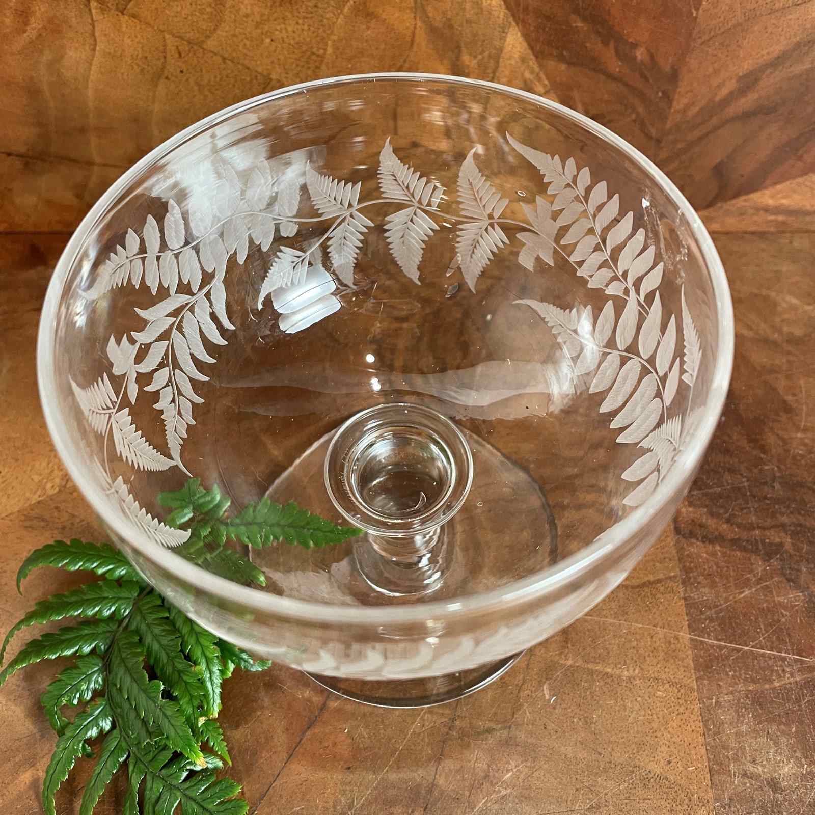 This is a fine fern engraved Bon-Bon dish on a pedestal base.