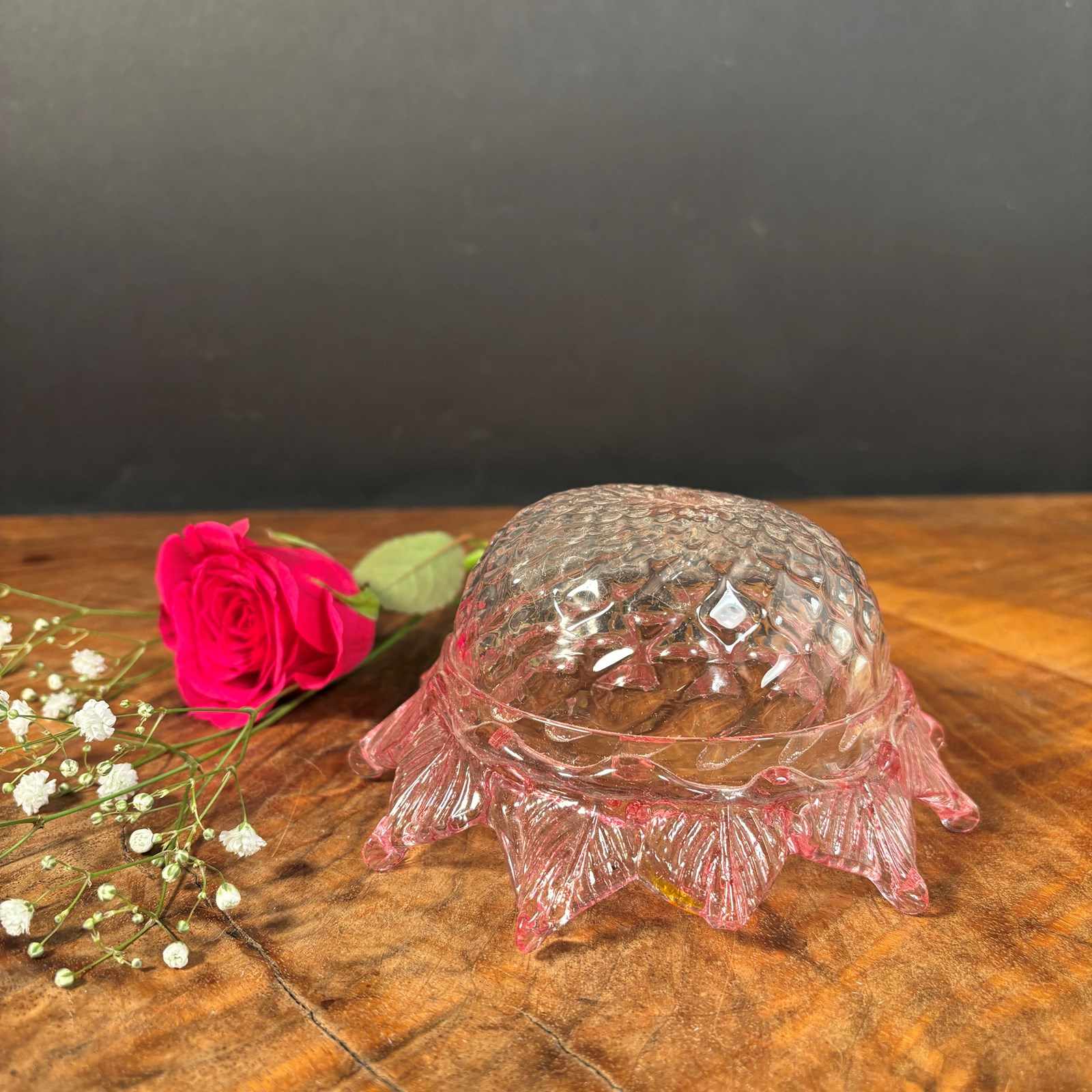 A very pretty cranberry glass light shade from the end of the Victorian period.