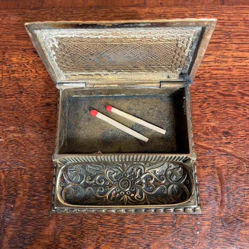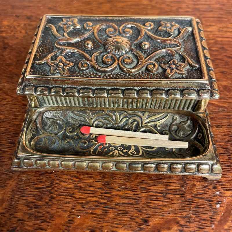 Victorian brass match striker, these would be in use on an occasional table for cigars and cigarettes. C1890