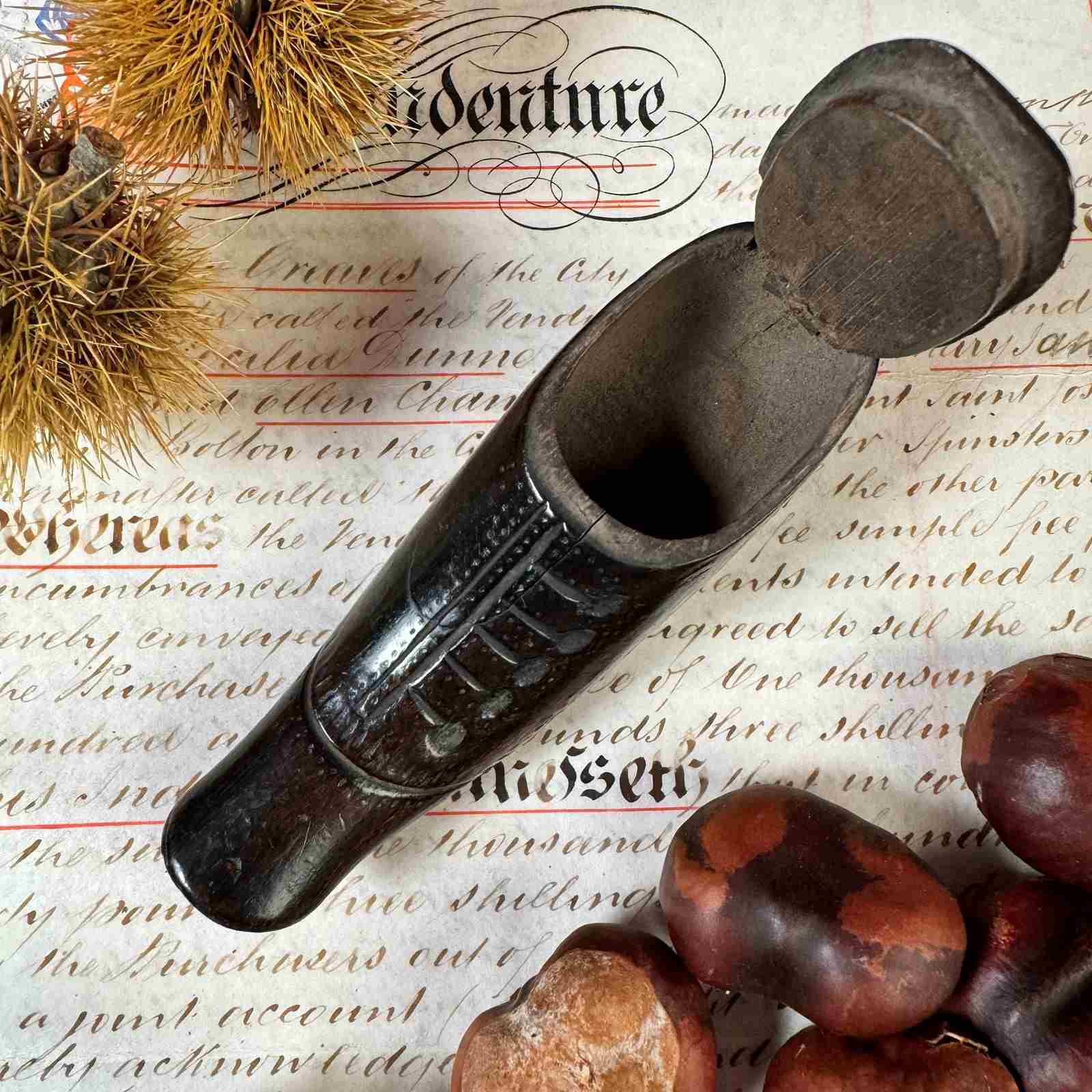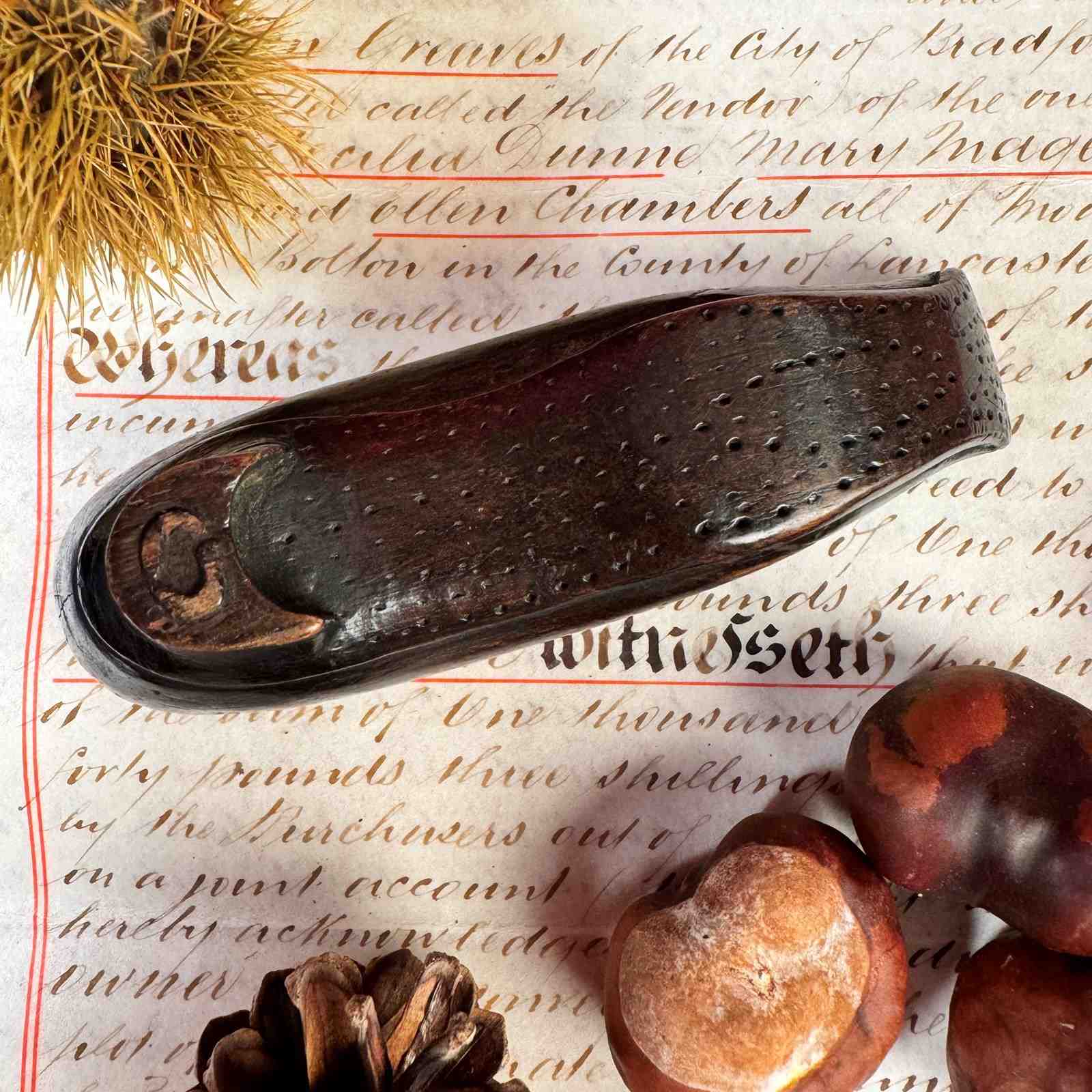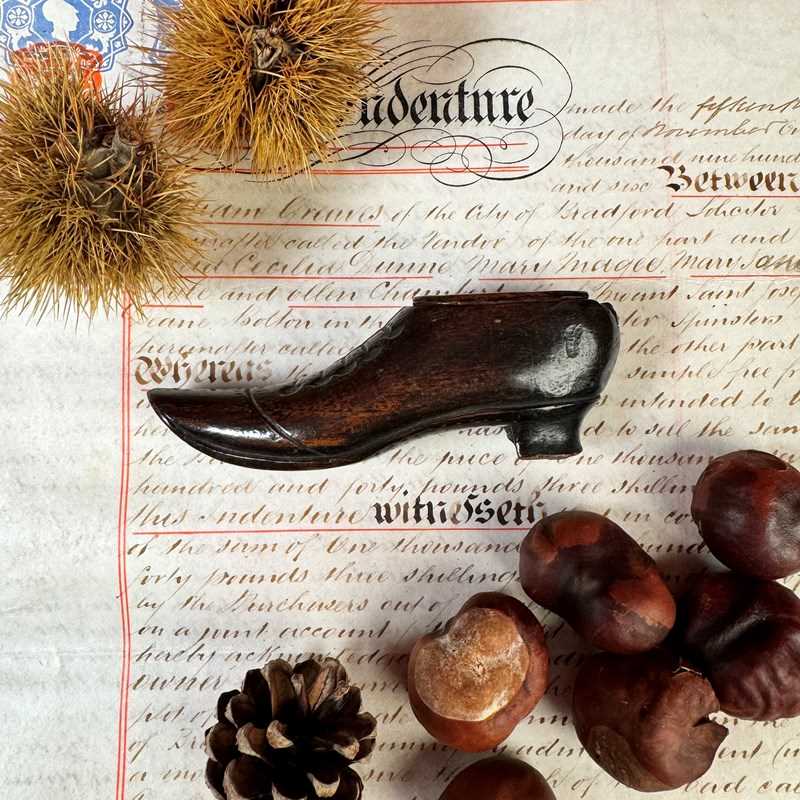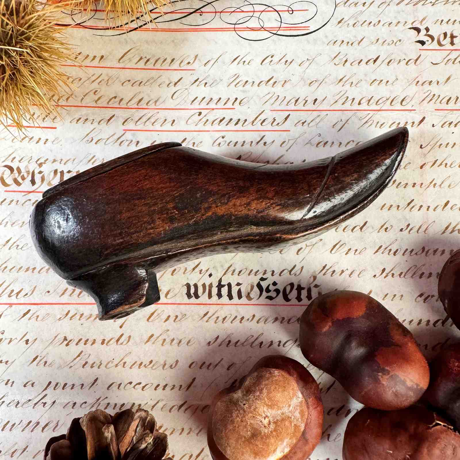 This is a snuff box in the form of a Victorian shoe with a beautiful patina.