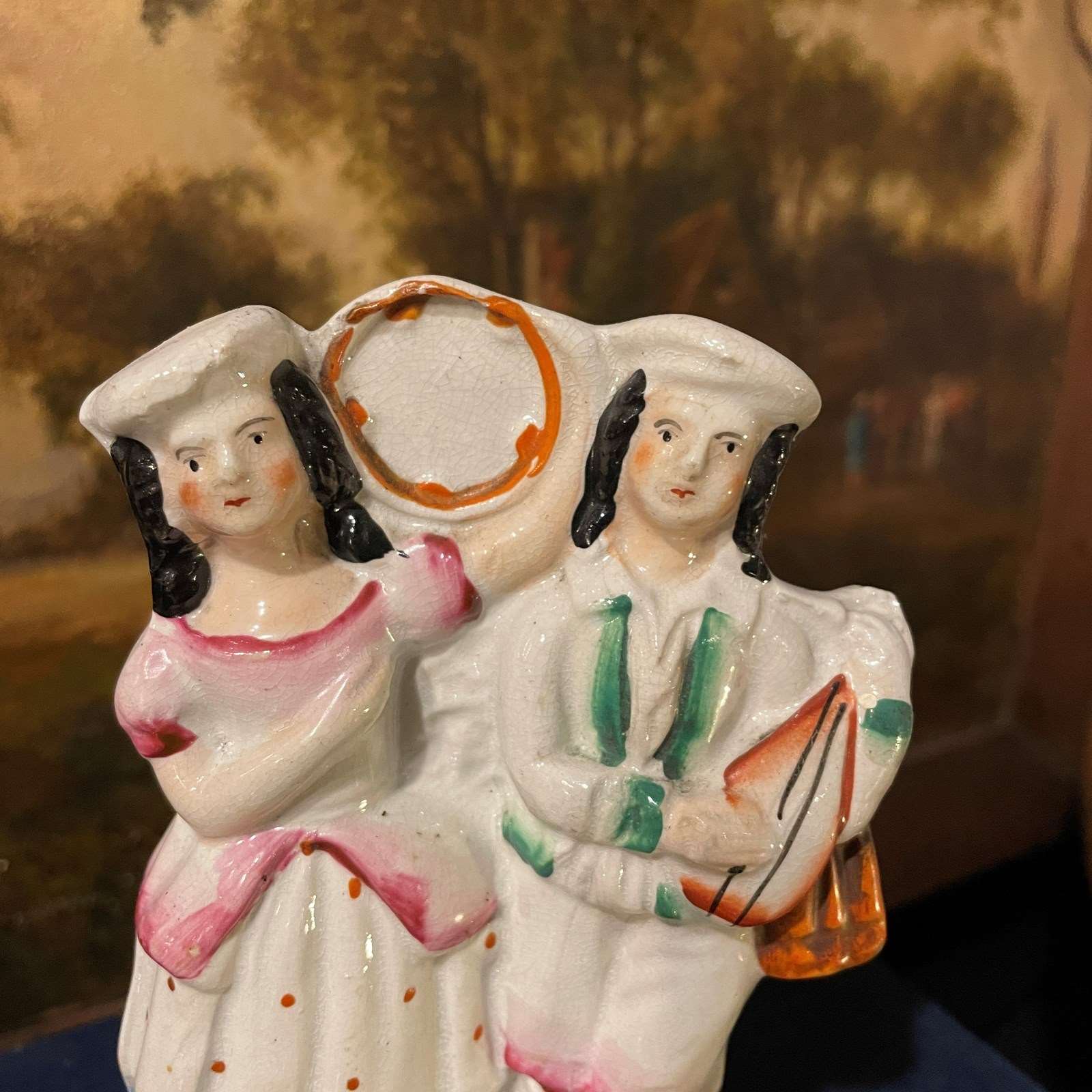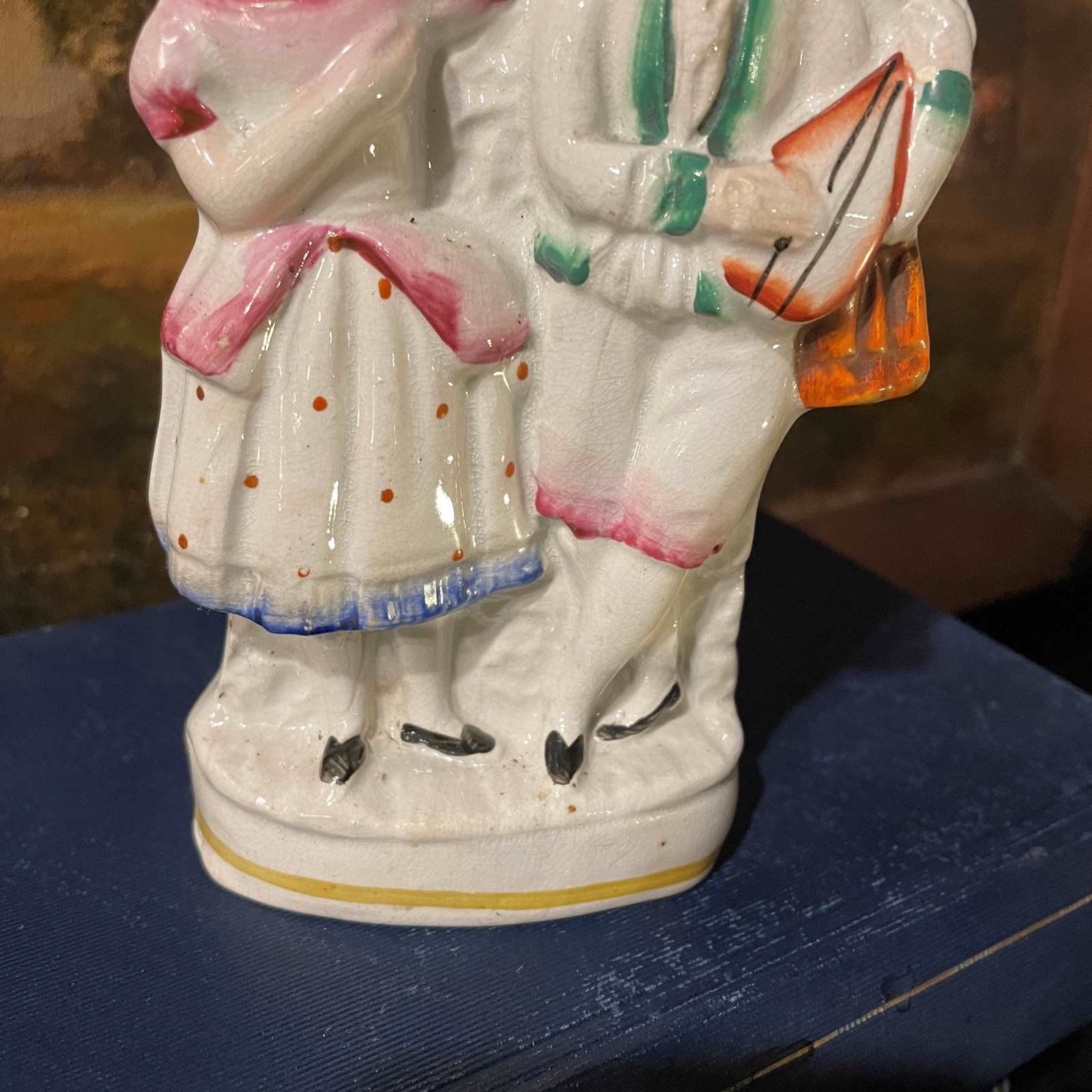 Hundreds of pottery factories were set up in Staffordshire during the Victorian period, many of them producing crued colourful figures, sold to decorate the more humble households. In a dark cottage in winter they must have seemed so bright and joyful, their colours brightening any room they were displayed, from kitchen to bed chamber.