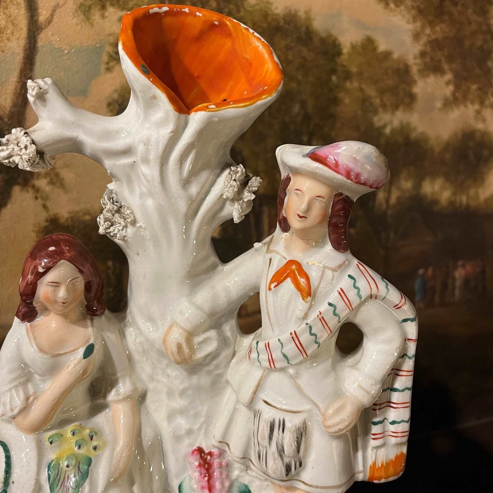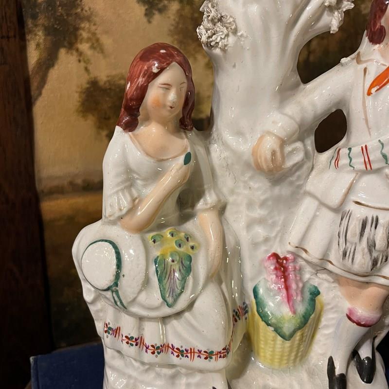 Condition is generally good, with no damage but as is always the case with Staffordshire figures of this age, there is some small flakes of paint missing. Minor staining on the back