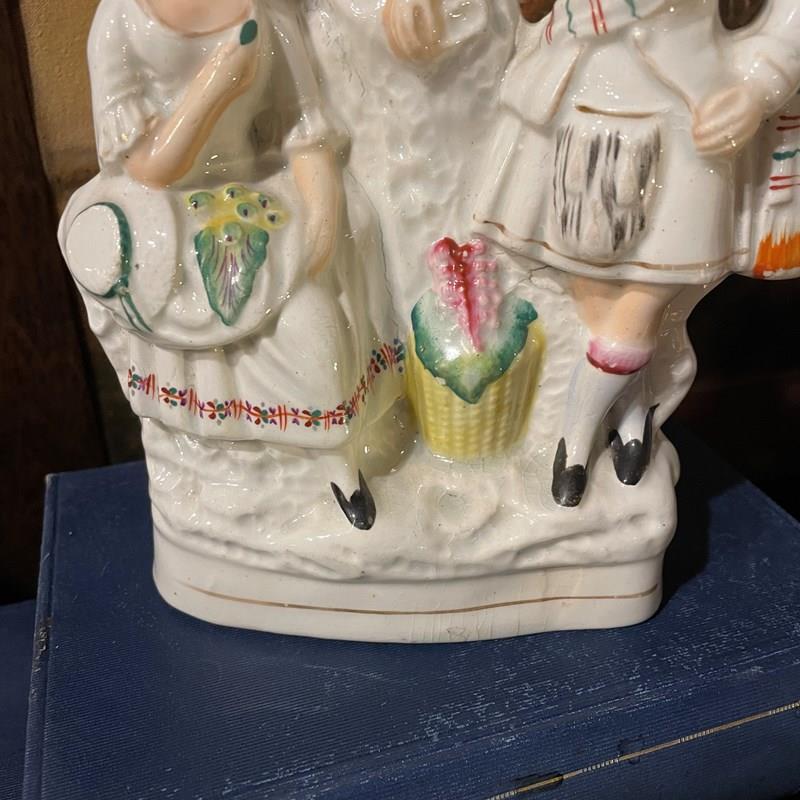 Hundreds of pottery factories were set up in Staffordshire during the Victorian period, many of them producing crued colourful figures, sold to decorate the more humble households. In a dark cottage in winter they must have seemed so bright and joyful, their colours brightening any room they were displayed, from kitchen to bed chamber.