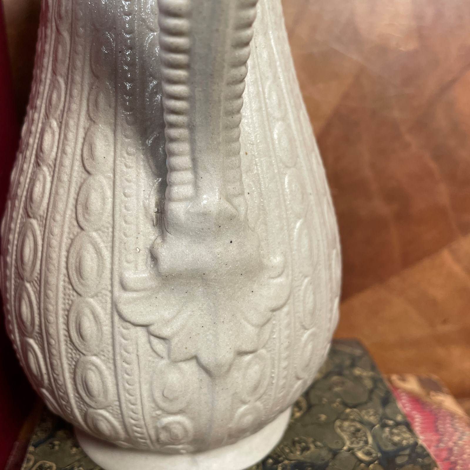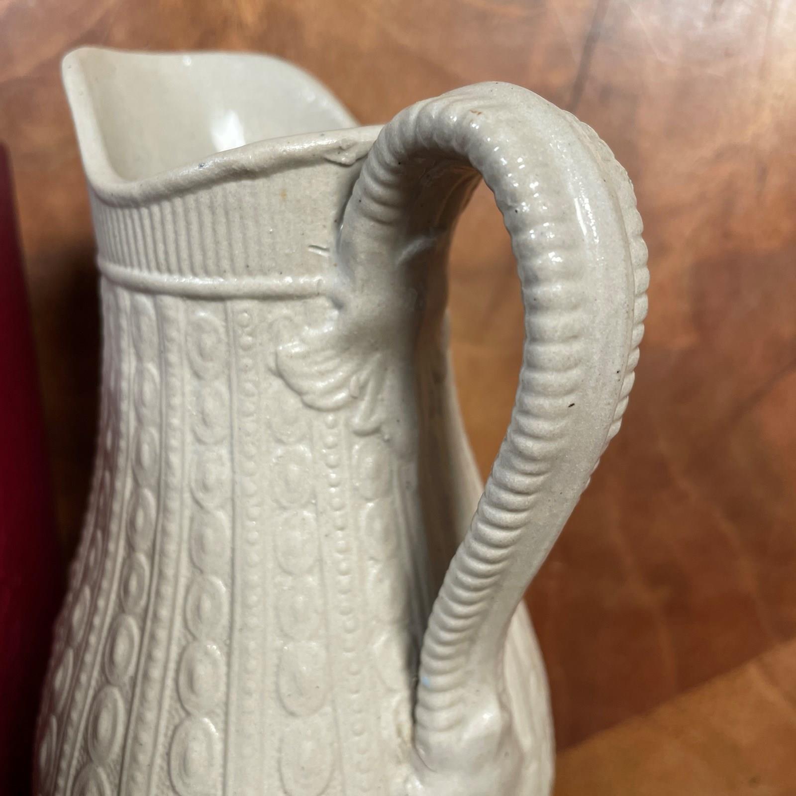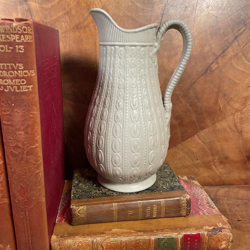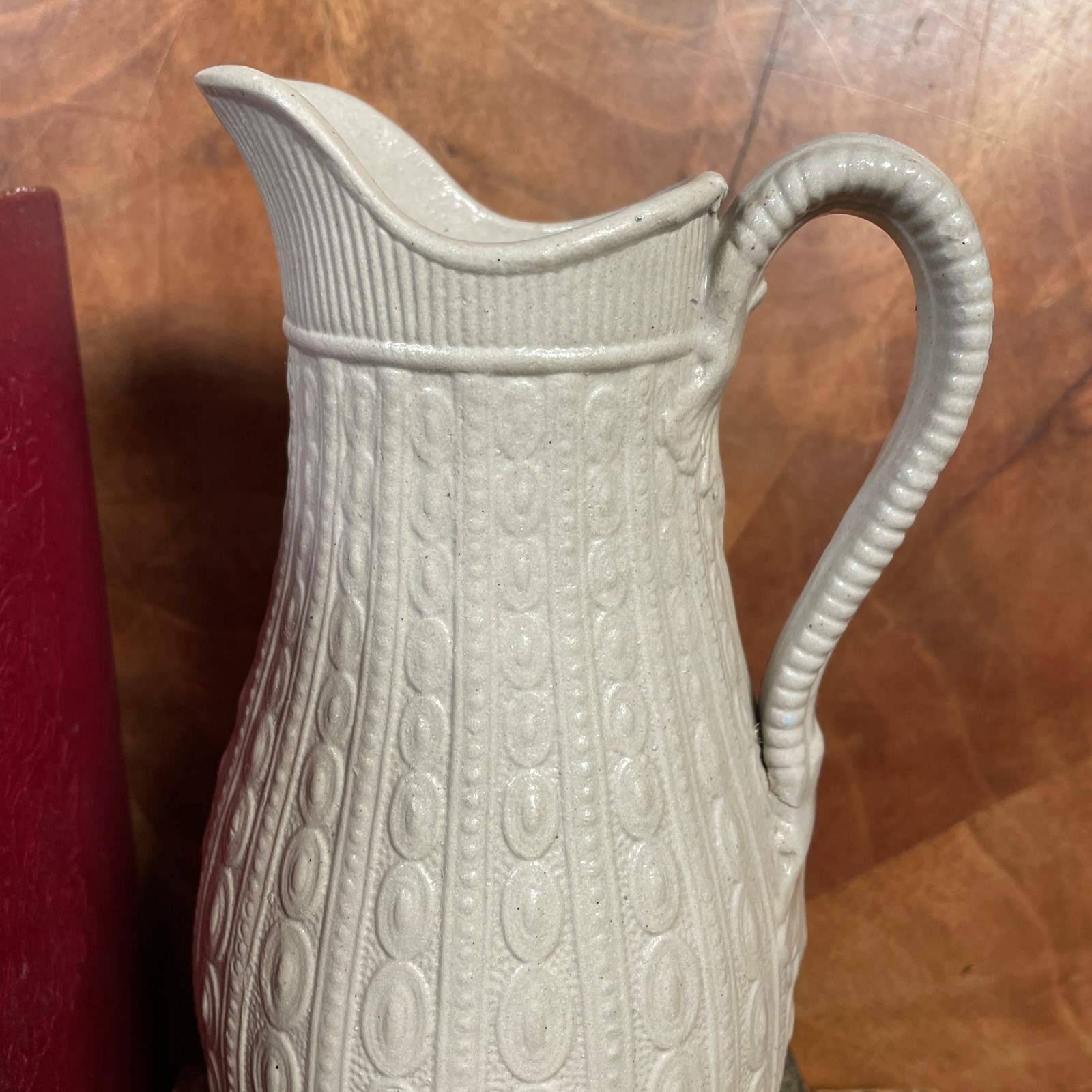 A smart buff coloured stoneware jug with fine detail to the handle, made by the Dudson factory in the middle of the 19th century, condition is good.