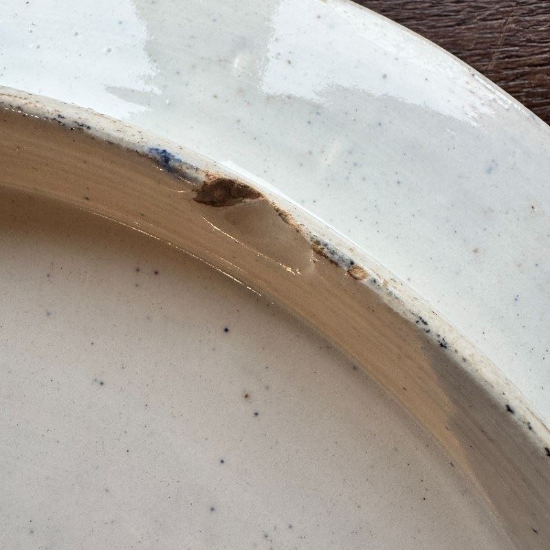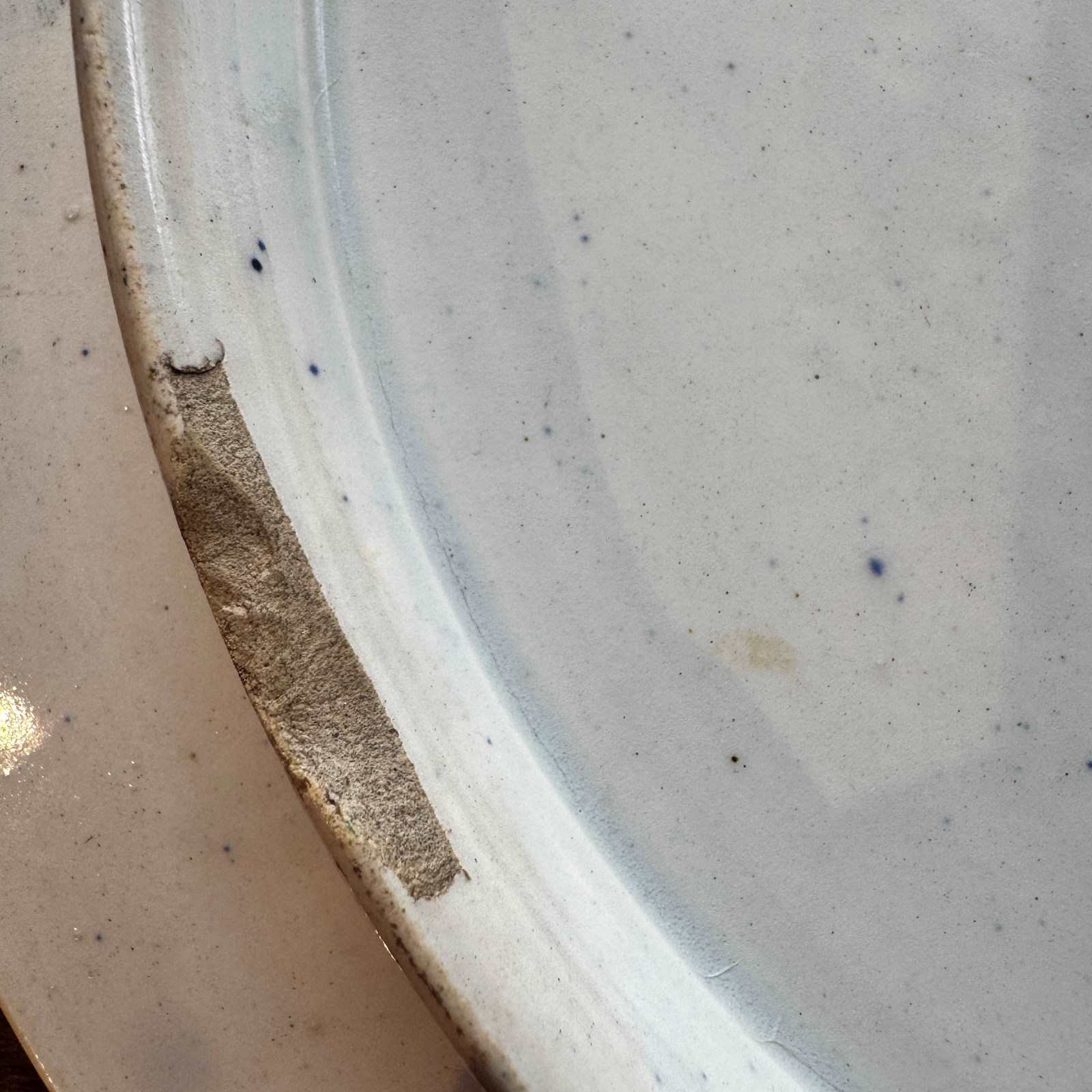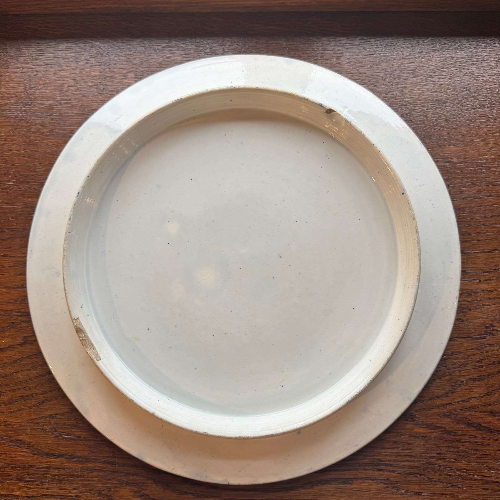 The plate is in good overall condition, there is a fine firing line on the glazing which can be seen in the close up. On the back there are two ships to the stand of the plate as seen in the last two photos.