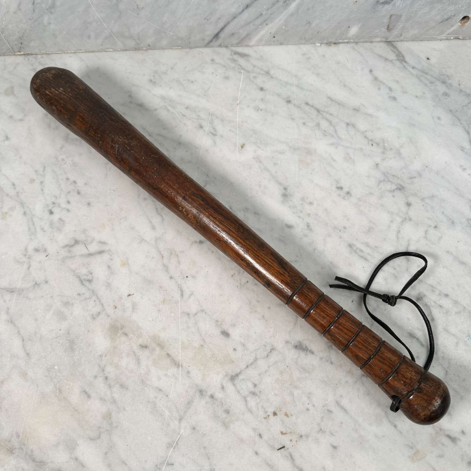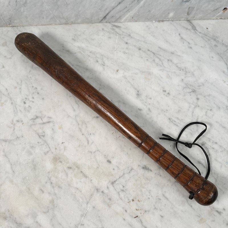 This truncheon was not police issue, however it would have been carried by a soidier in the first world war as a hand weapon, often used in trenches in hand to hand war fare. It may have also been kept by a publican to keep behind the bar