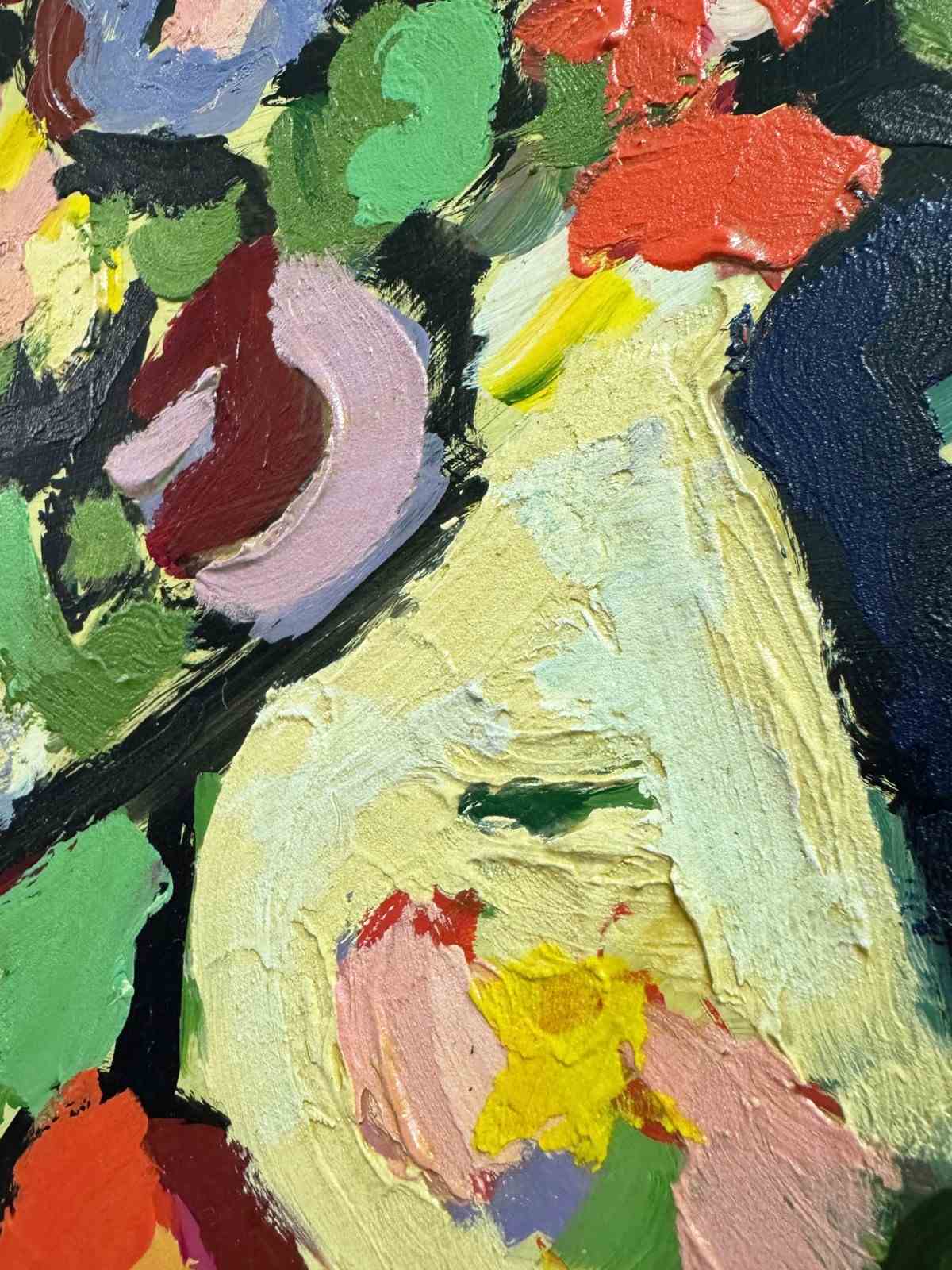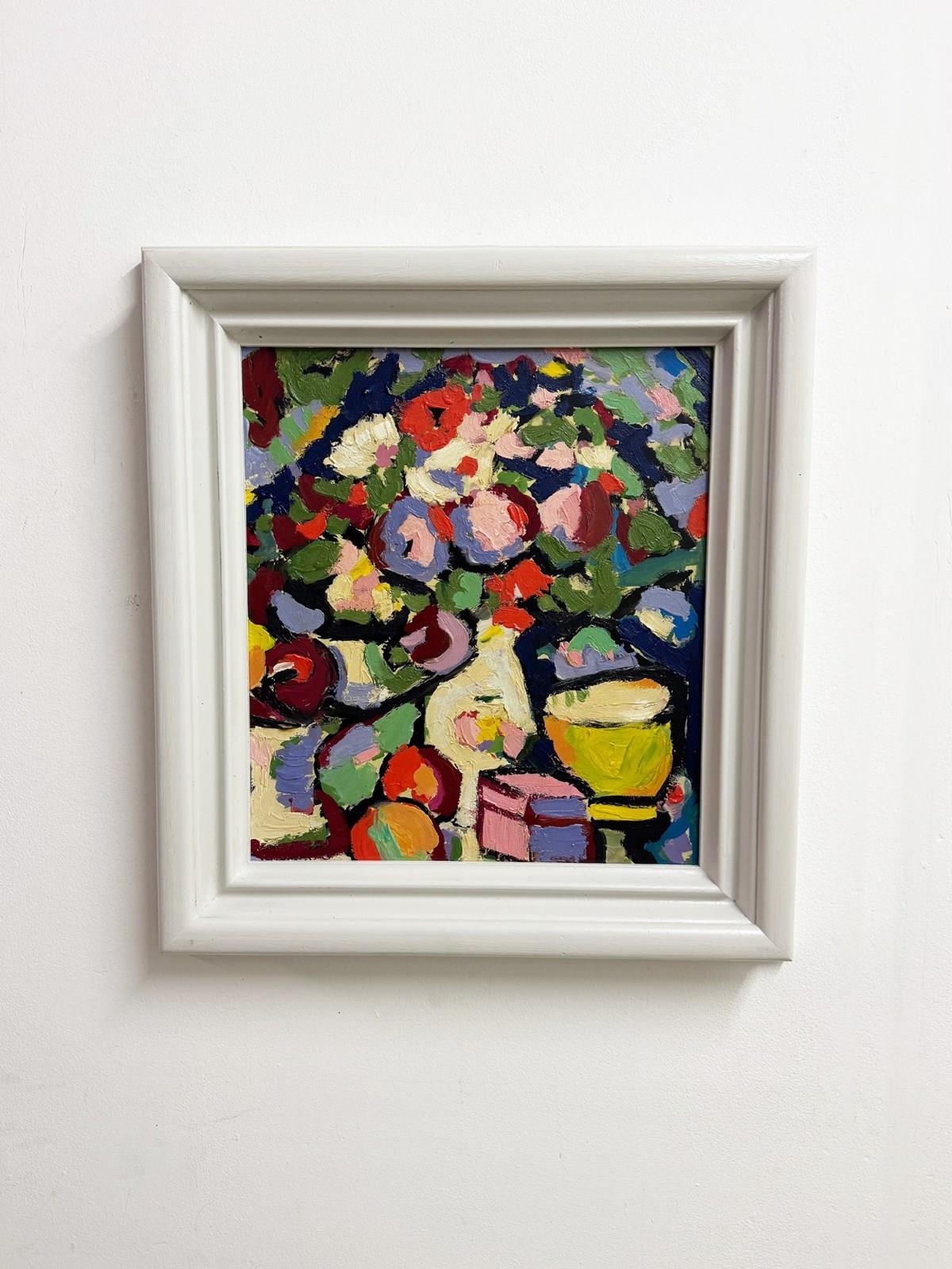 Abstract Still Life Flowers Impasto Modernist Oil Painting