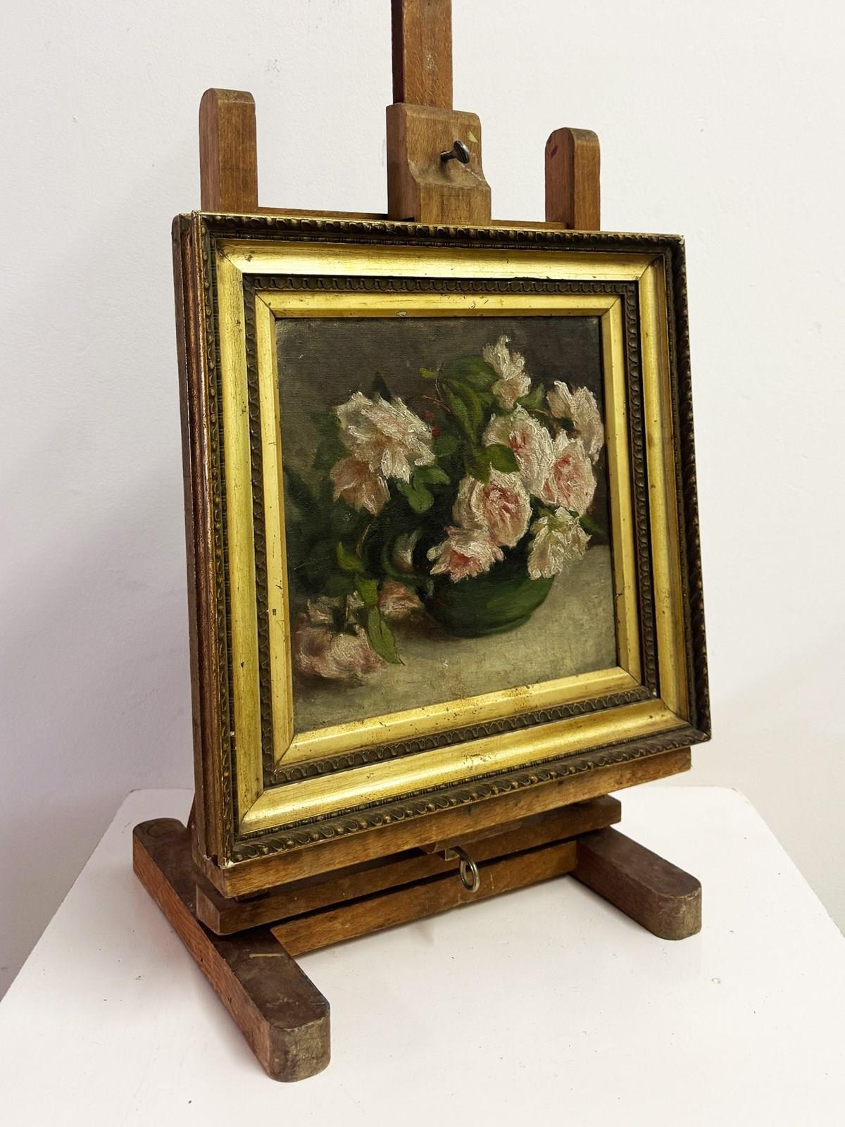 Antique Oil Canvas Painting Floral Still Life Roses Flowers