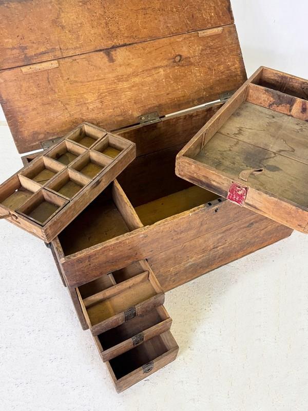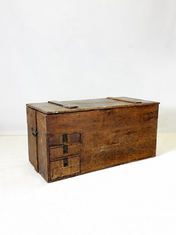 Antique Rustic Wooden Trunk With Drawers