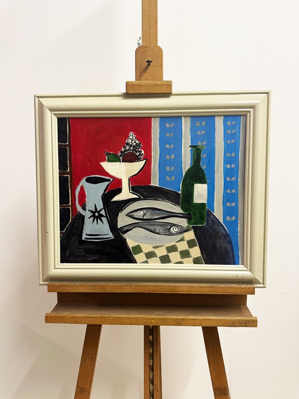 Cornish Still Life Modernist Painting With Fish