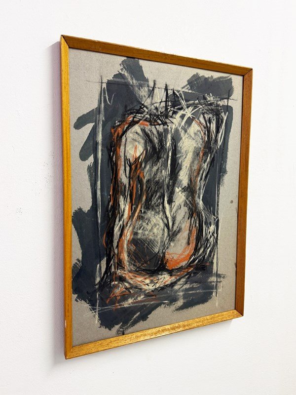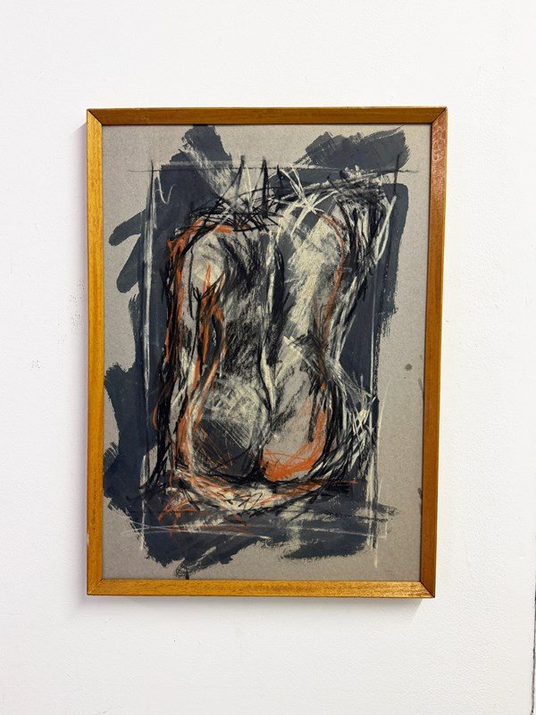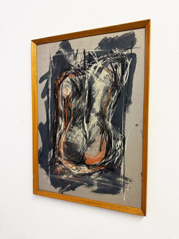 Presented in a period solid oak Rowley-style wedge frame, the work balances raw immediacy with a strong structural composition. A compelling late 20th century piece that captures both form and emotion through confident, expressive brushwork.