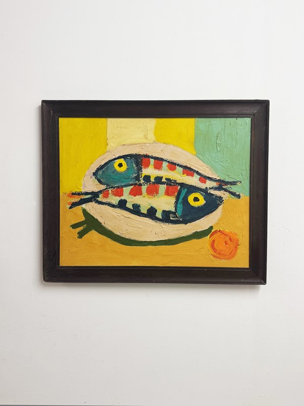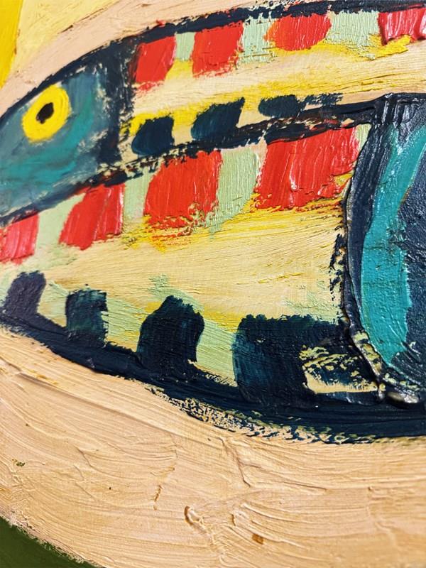 Large Abstract Fish Textured Impasto Still Life Oil Painting