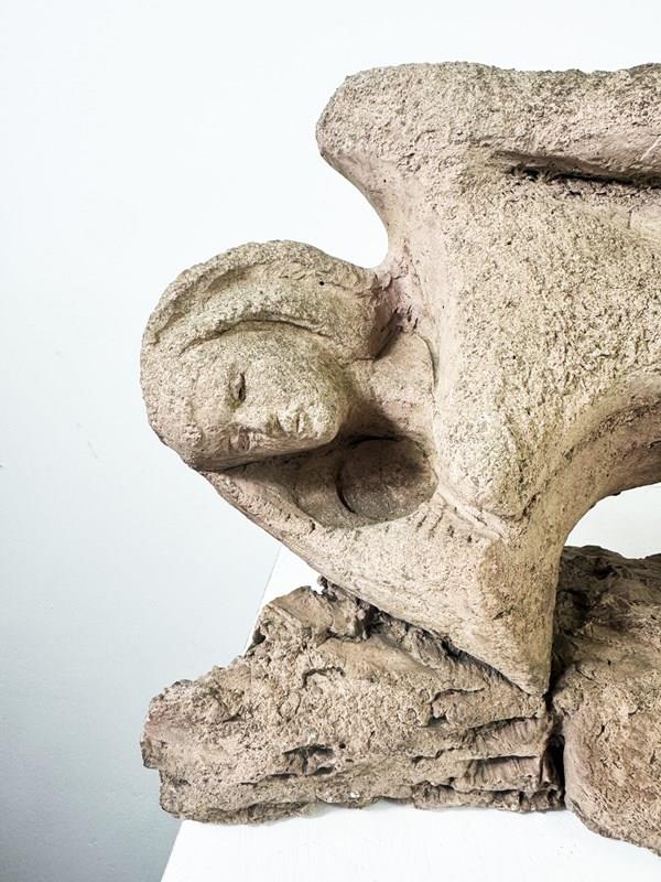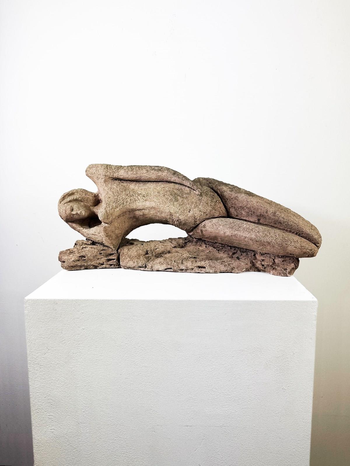Large Mid-Century Ceramic Reclining Figure Sculpture | Modernist Stoneware