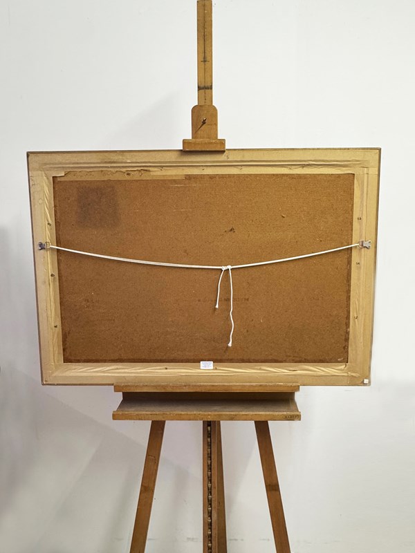 Presented in its original frame, the painting has strong decorative presence and would suit both contemporary and traditional interiors. A compelling example of mid century British figurative art.