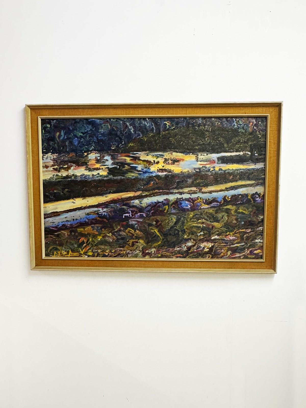 This striking, large-scale work combines mid-century modern aesthetics with painterly expression, making it a true statement piece for any interior, gallery, or collector’s wall. Its rich texture and depth bring warmth and movement to both contemporary and retro-inspired spaces.