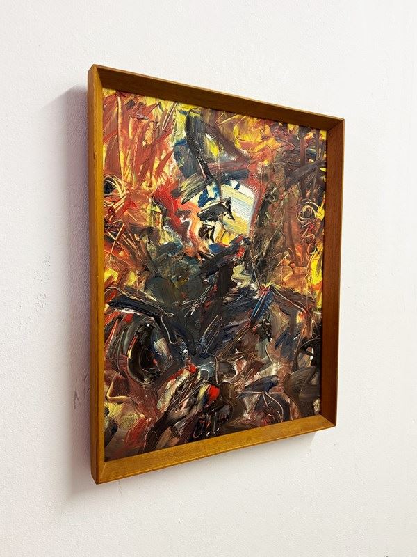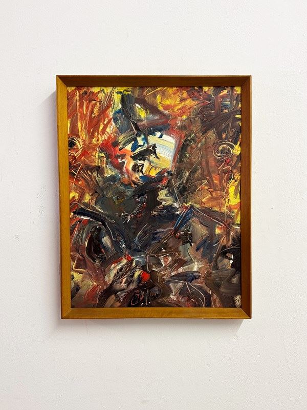 Mid-Century Abstract Oil Painting Expressive Artwork