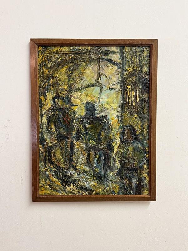 Mid-Century Abstract Textured Impasto Oil Painting