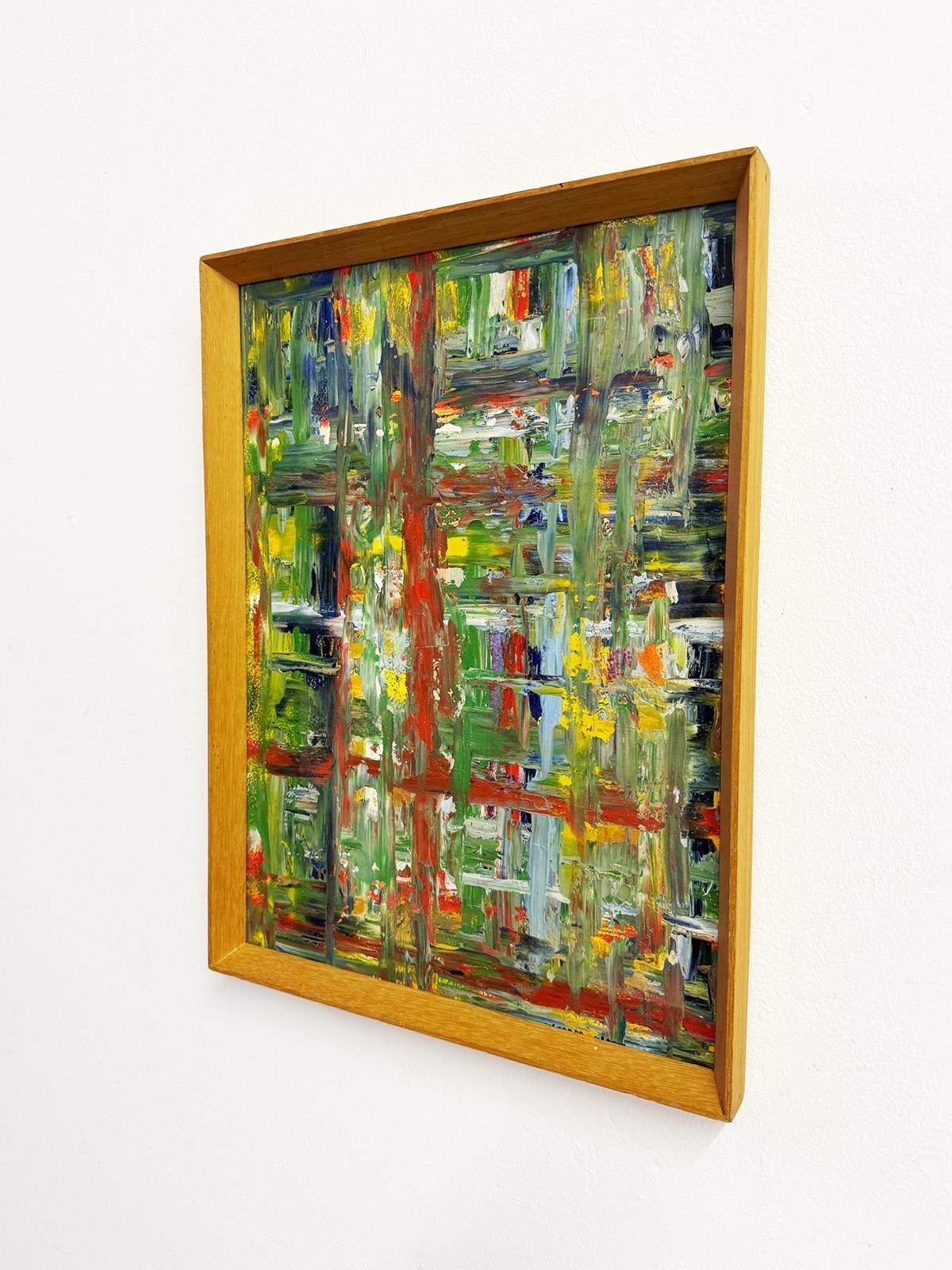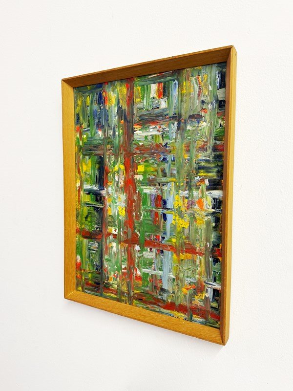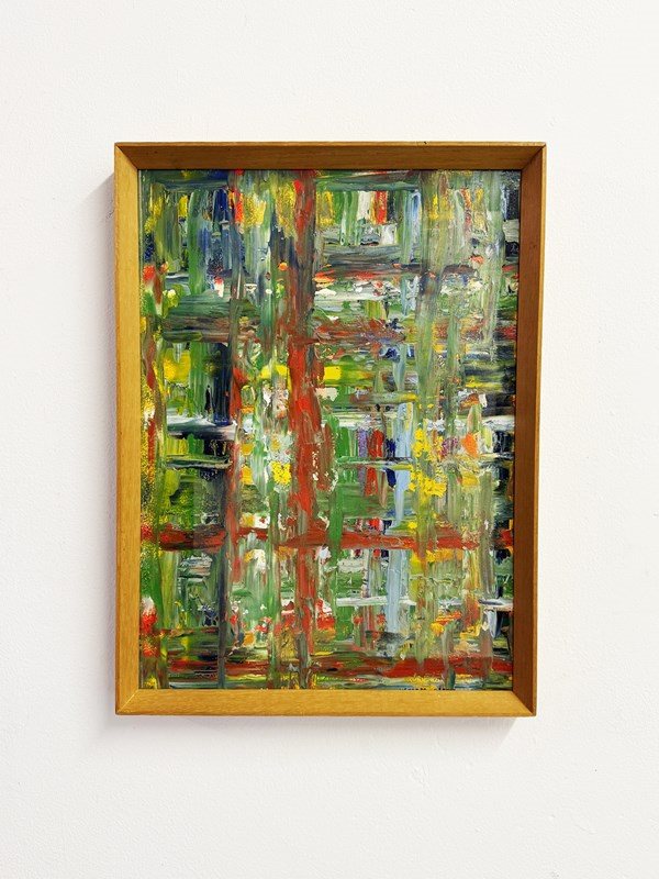 Bring color and energy into your space with this vibrant mid century abstract painting.
