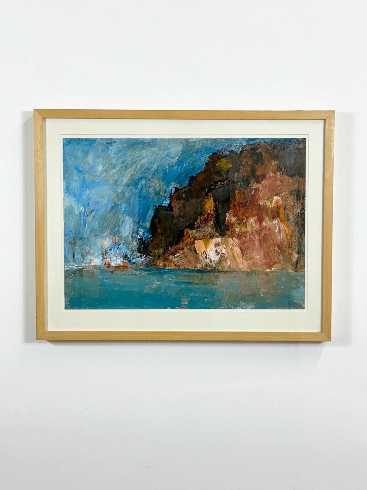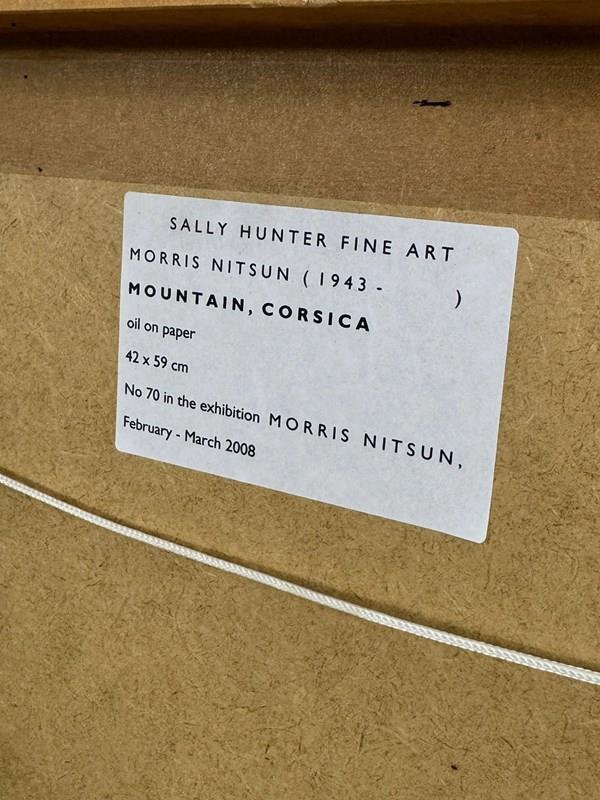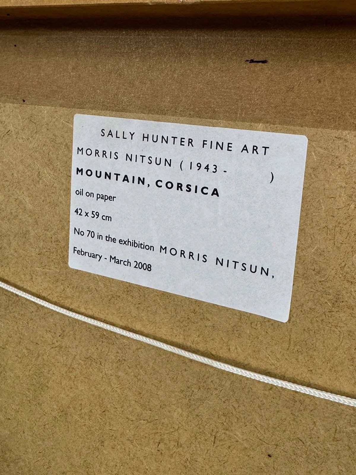 Oil on paper by renowned artist, Dr Morris Nitsun (1943-2022). Titled - Mountain, Corsica. Signed bottom right, original frame by artist and ready to hang.