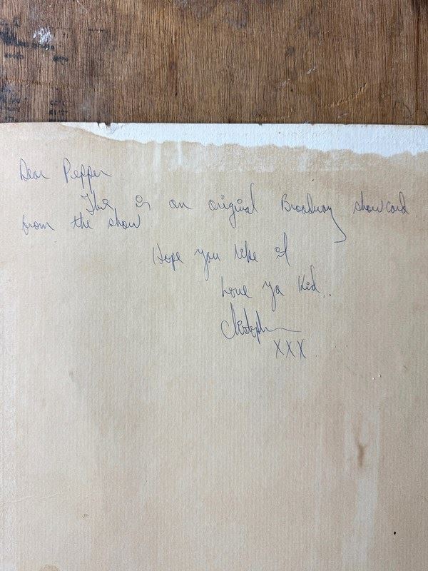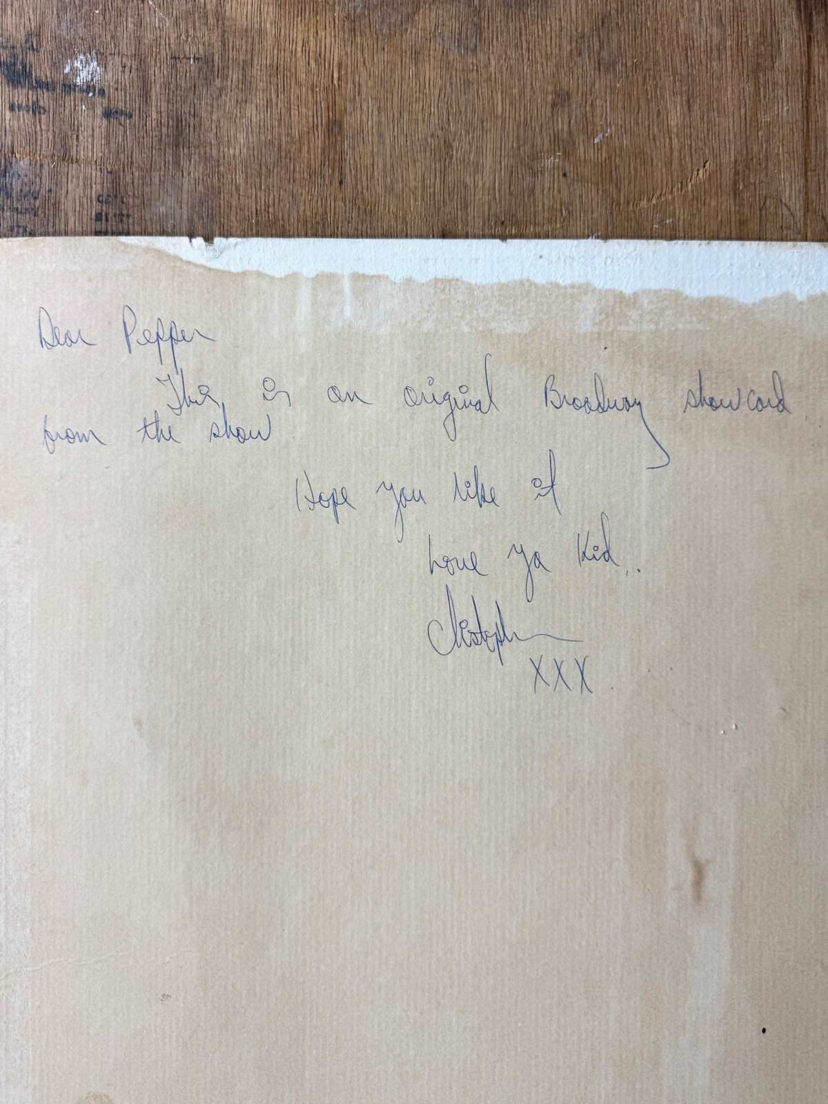 Note to the reverse reads: “Dear Pepper, This is an original Broadway show card from the show. Hope you like it. Love ya kid, [signature] xxx