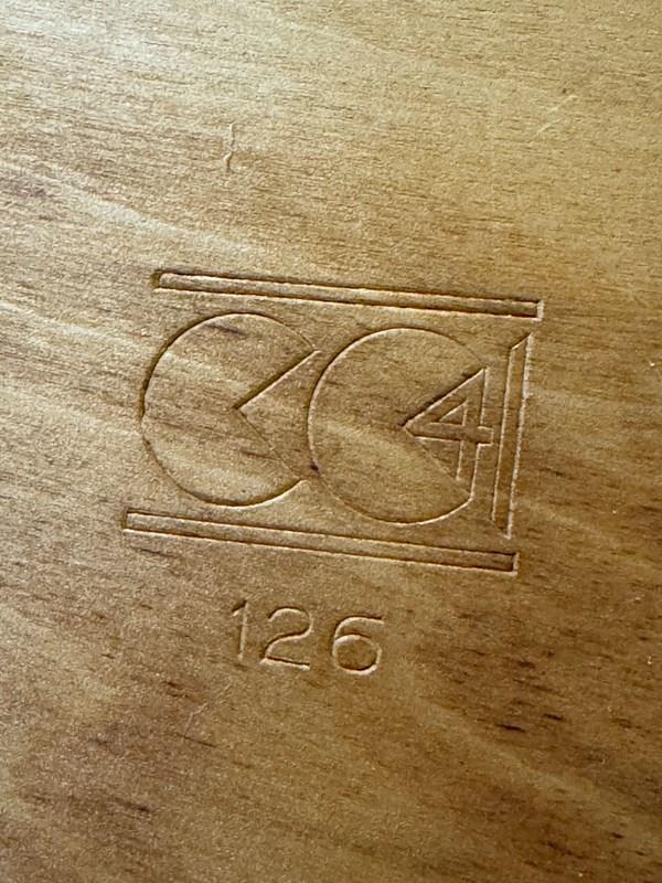 A British CC41 Utility side table, dating from the 1940's, produced under the government’s Utility Furniture Scheme, an initiative introduced during World War II to address severe timber shortages and the high demand for furniture, particularly for those whose homes were destroyed by bombing.