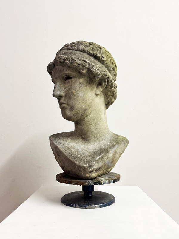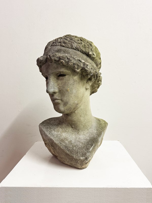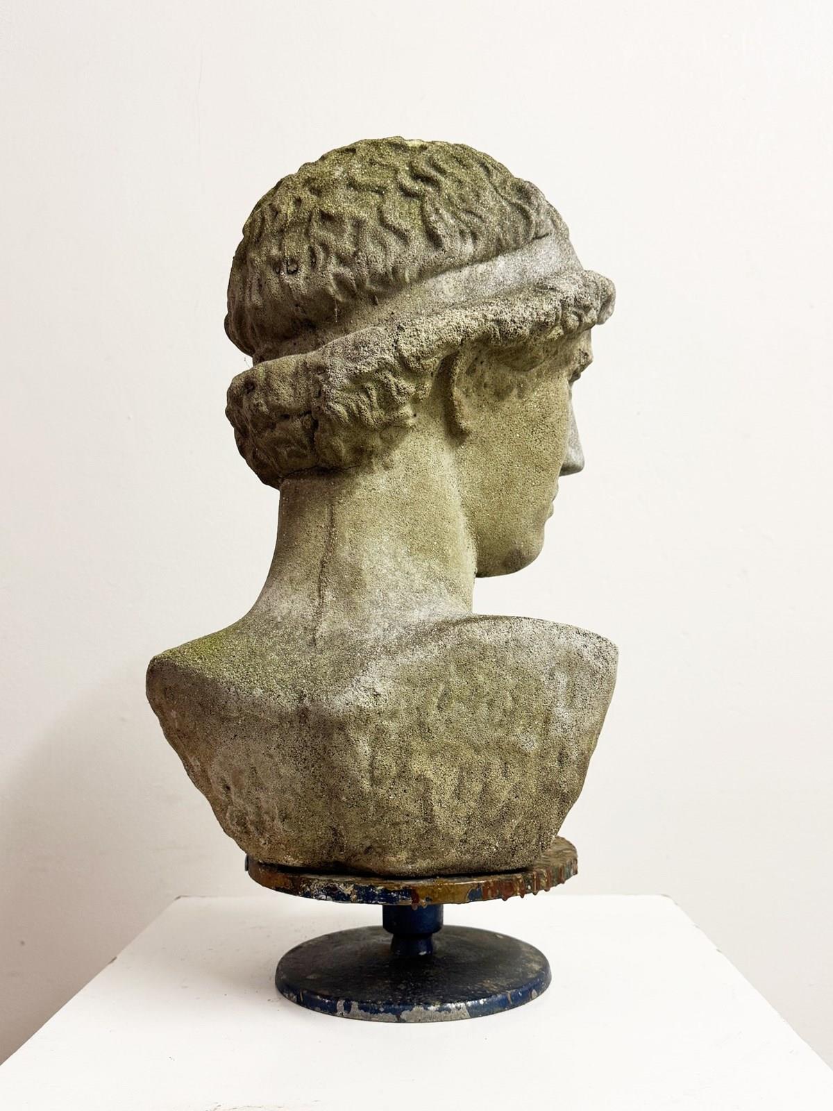Vintage Classical Garden Weathered Stone Bust Statue