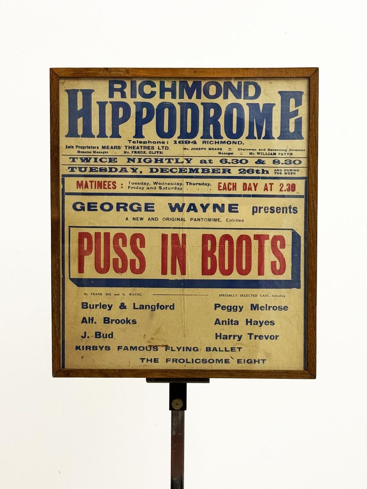 Vintage Theatre Poster, “Puss In Boots” Pantomime, Richmond Hippodrome, 1920S