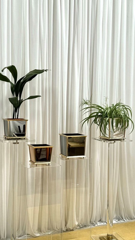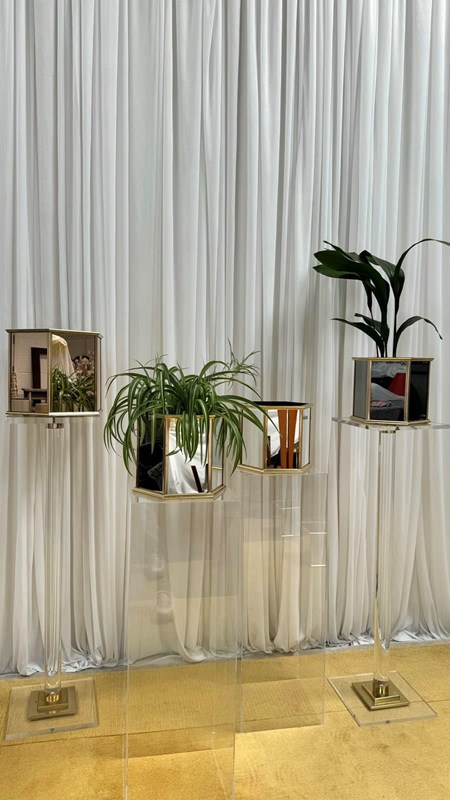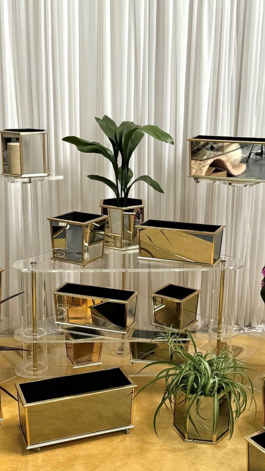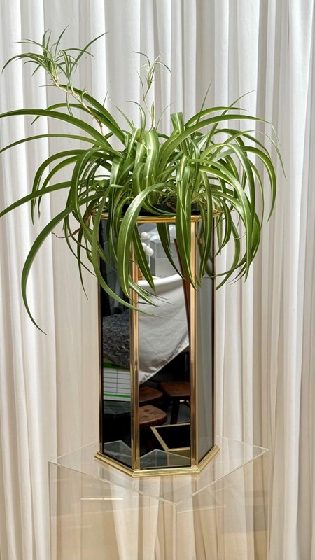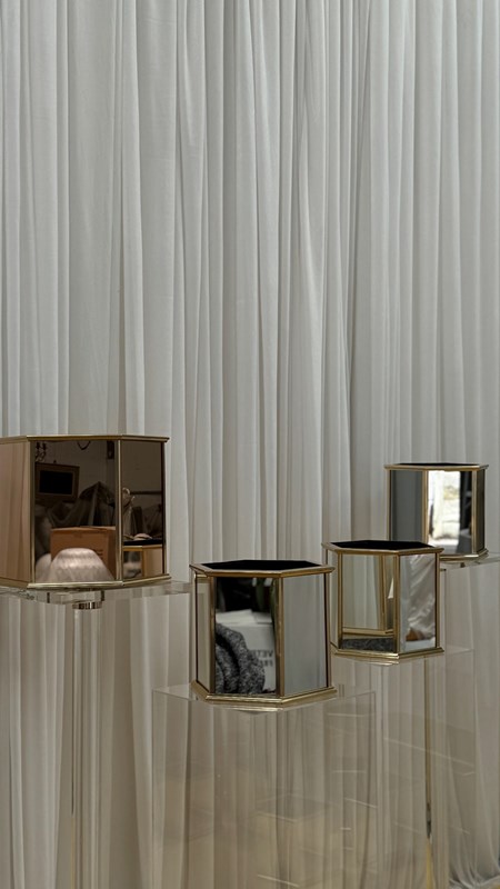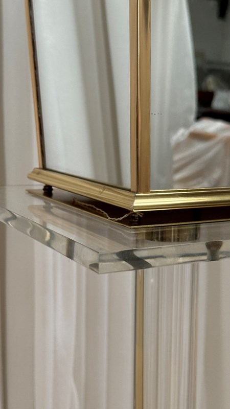 They come in various shapes, (rectangular, square and octagonal) and sizes in plain, rose and smoke tinted mirror plate with a gold metal trim with castors, feet or flat bases. Circa 1980s, Belgium.