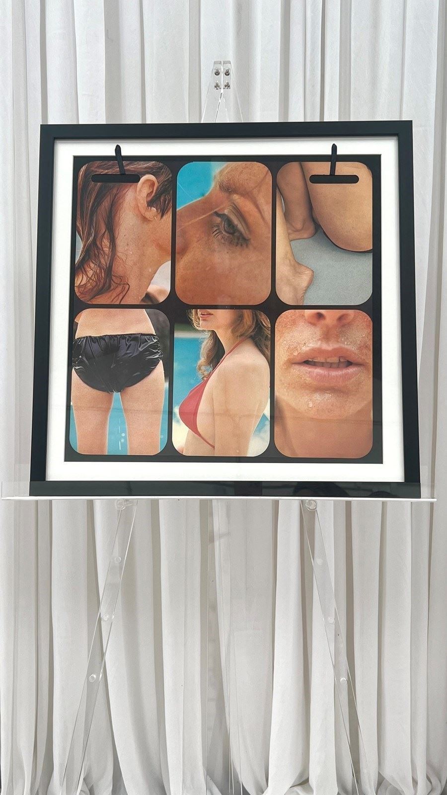 Photographed by Harri Peccinotti. Sexy and fresh, a genuine document of the Los Angeles beach scene, as Peccinotti describes it. Each calendar month has an image on both sides we have selected one however you can change the image over if needed, some of the pages have old poems on. Professionally and beautifully framed in a unique bespoke design, with the prints held off their hinges with a black ribbon floating against the archival conservation background mount board. Good vintage condition some have some faint marks and edges slightly worn but nothing that detracts from the fabulousness of them.