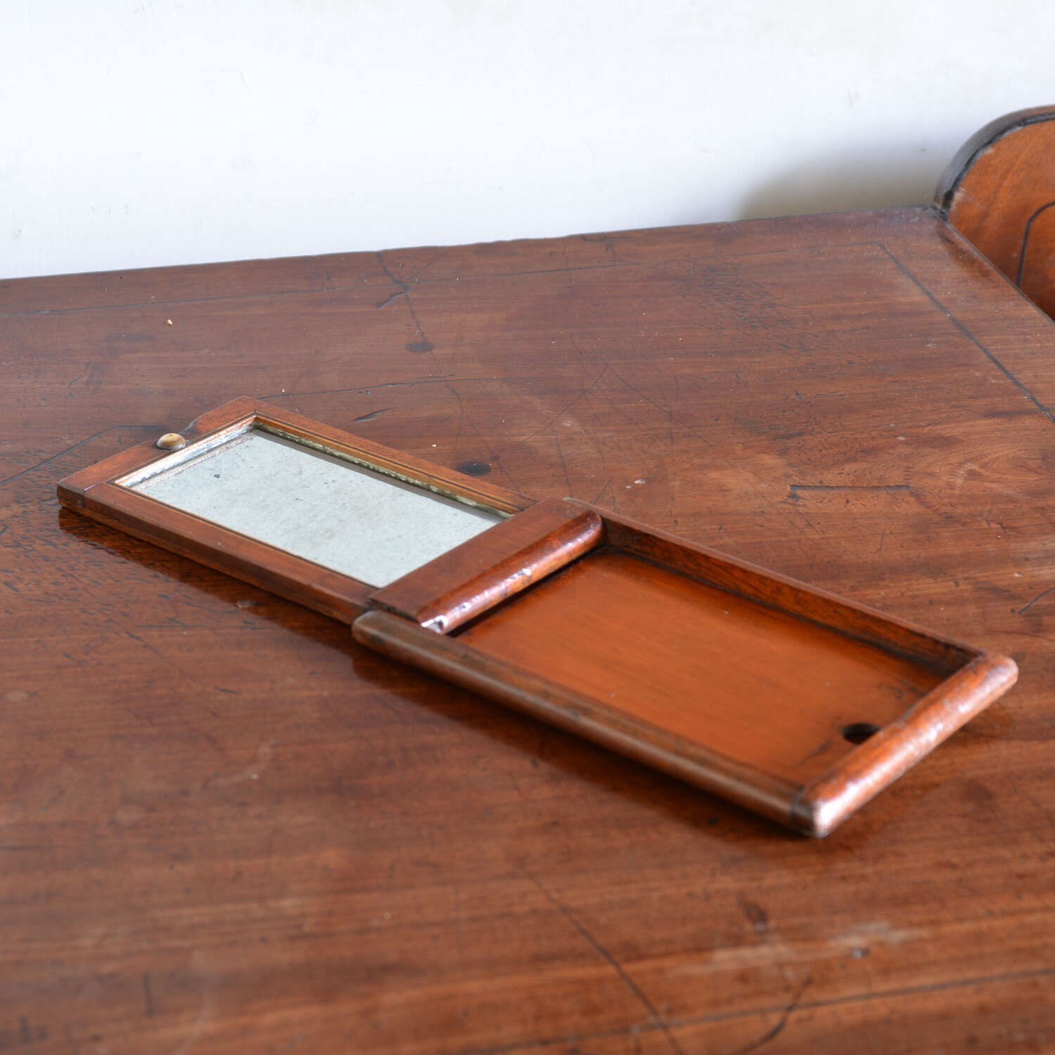 Folding campaign mirrors, used by the military when in the field for shaving and generally keeping up appearances, they fold flat to make them portable.