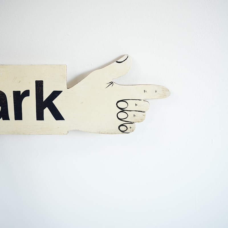 Vintage Hand-Painted Finger Pointing Car Park Sign