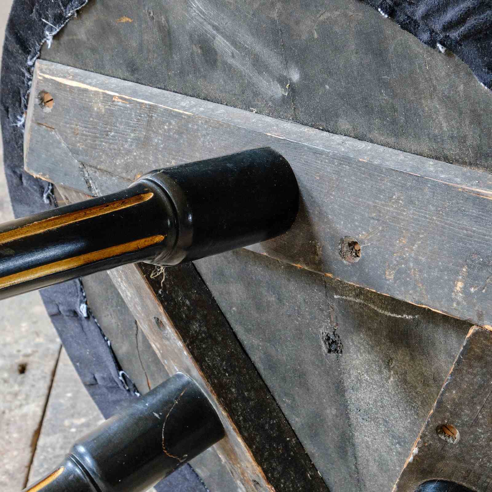 In good solid antique condition. The velvet top can be replaced to a fabric of your choosing.