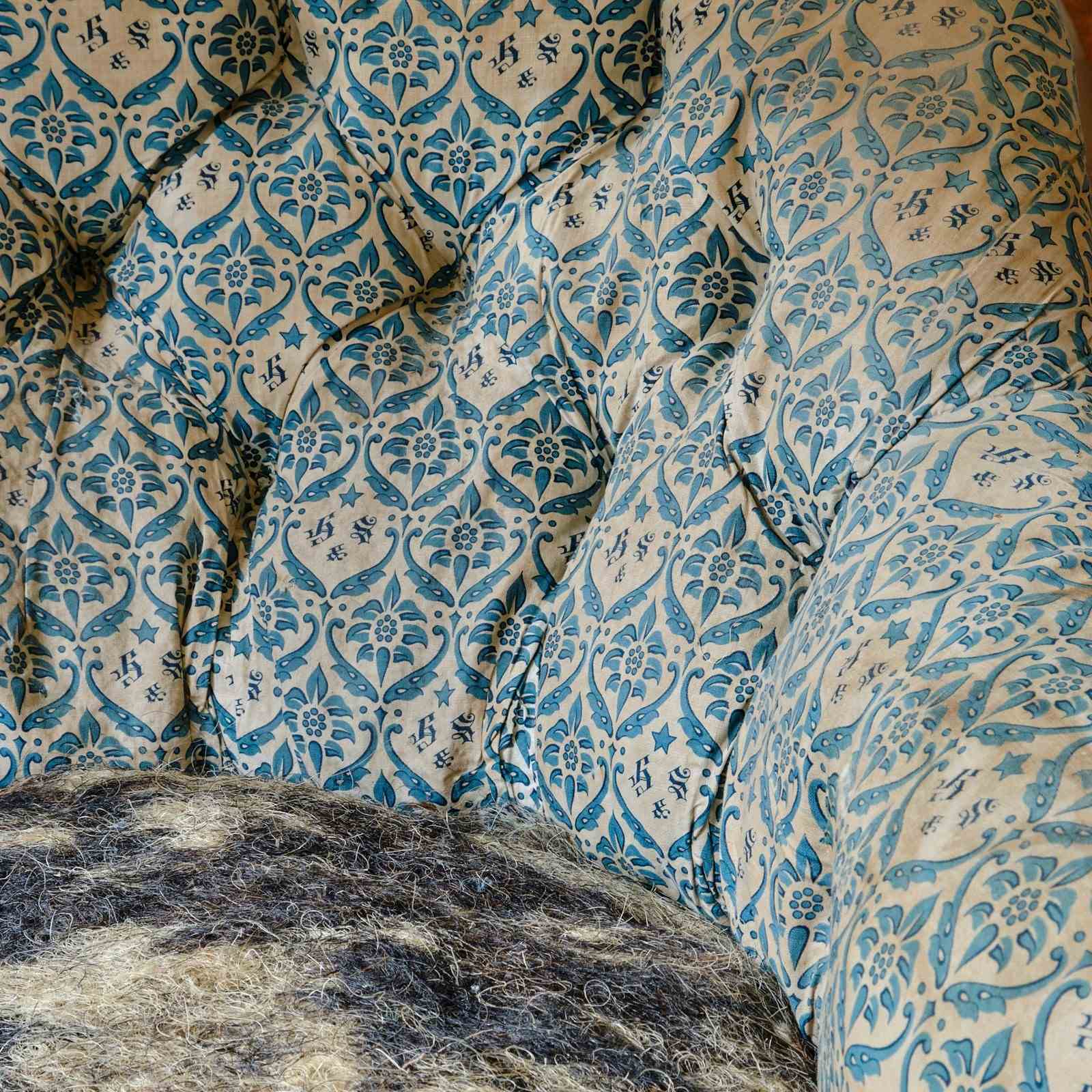 H&S branded blue and white cotton lining to recreate how the chair would have originally been finished when it left the factor.