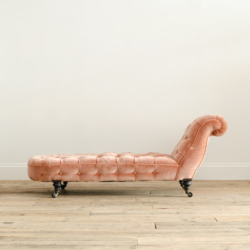 A nicely shaped 19th century daybed with fully buttoned upholstery. Raised on 4 turned legs and casters. The fillings are nice and firm but comfortable and ready for a fresh top cover.