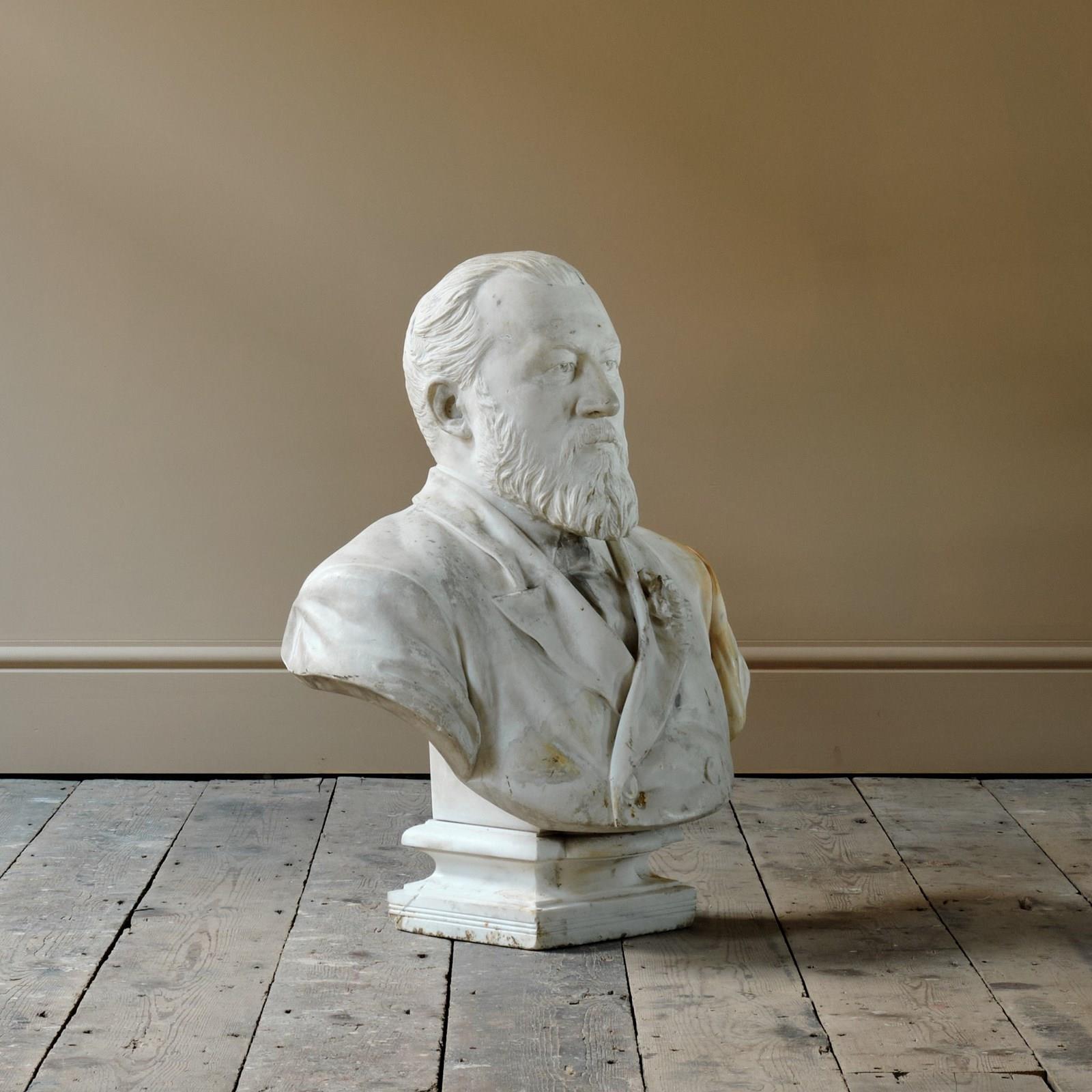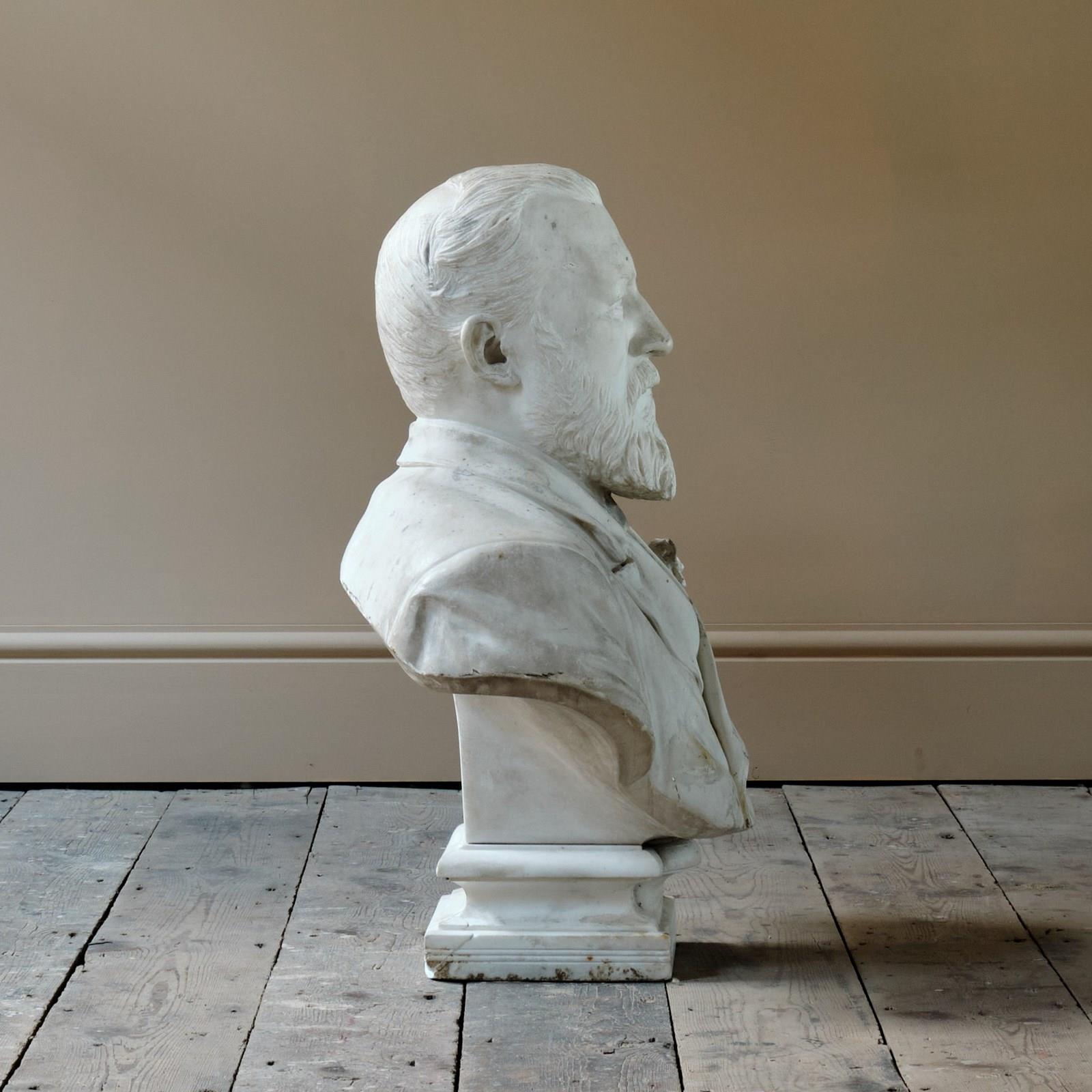 A late 19th century carved marble bust of a distinguish gentleman by William John Seward Webber 1842-1919. The bust is dated and signed to the rear 1891.
