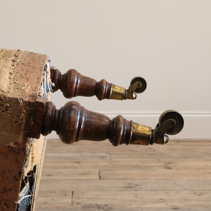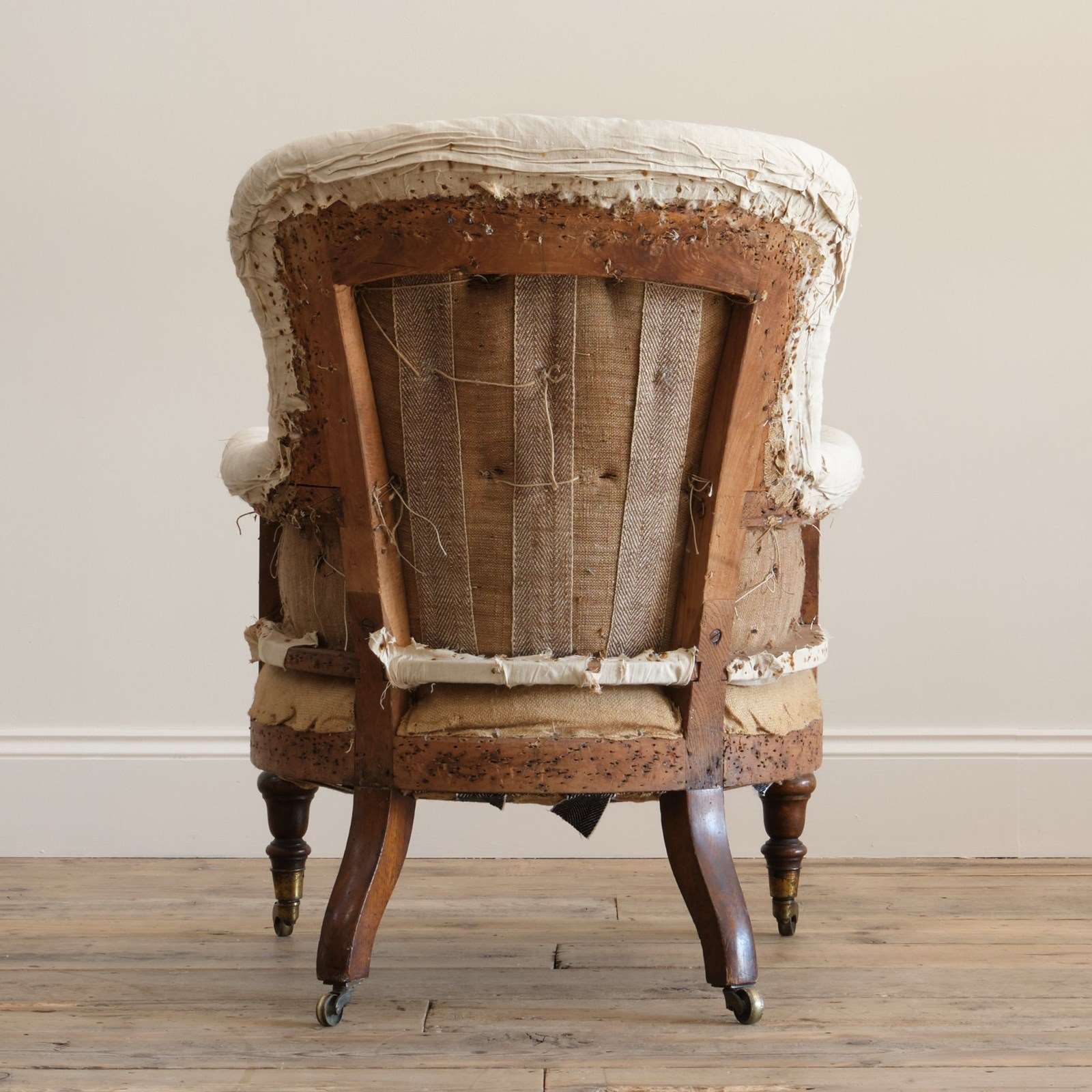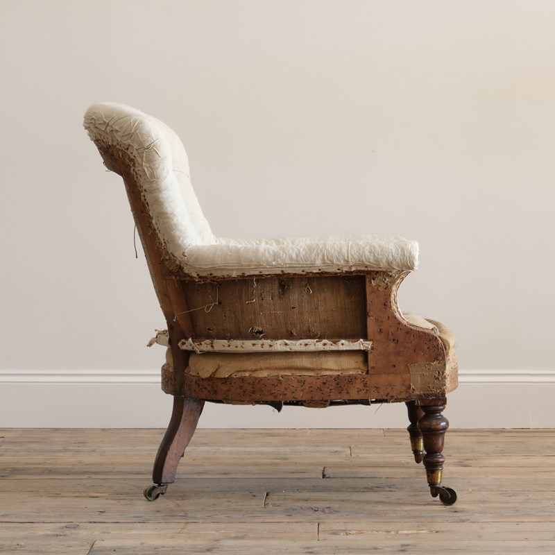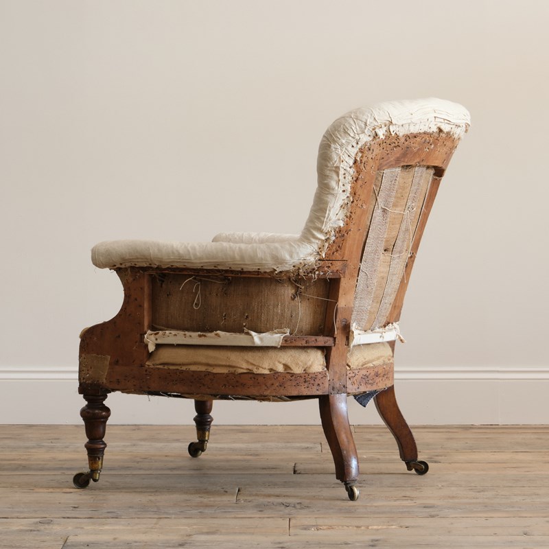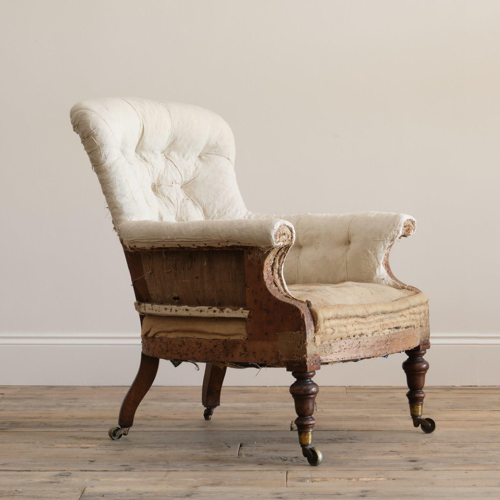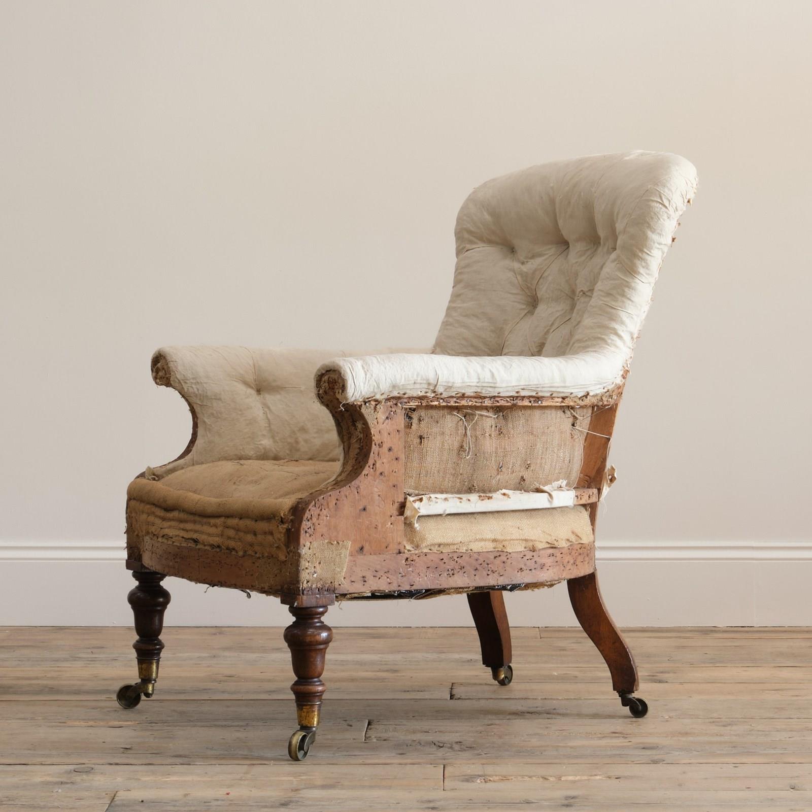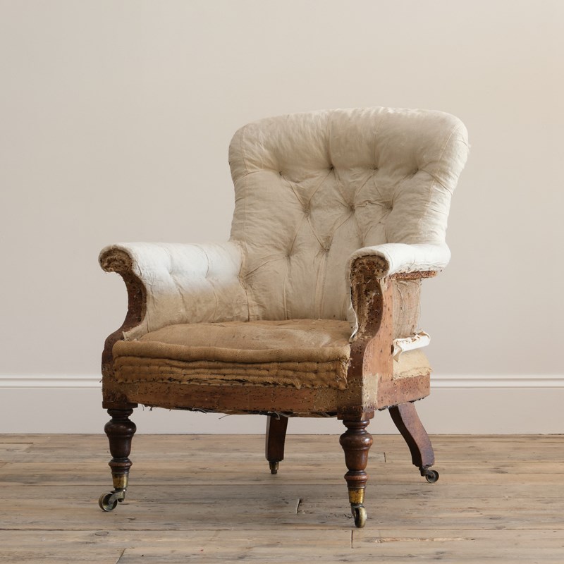 Structurally in good solid condition and retaining the original buttoned horsehair to the back and arms.