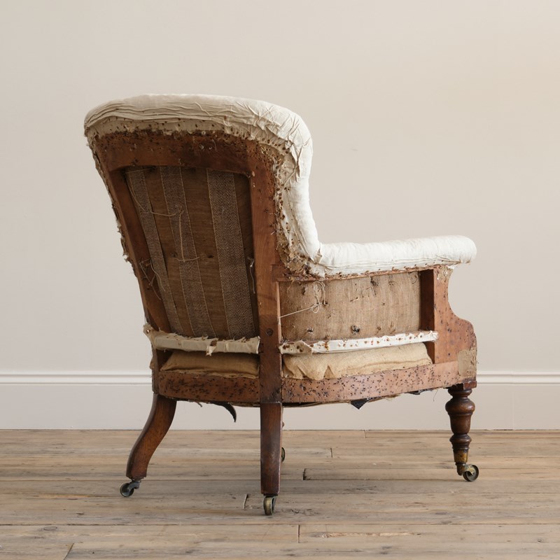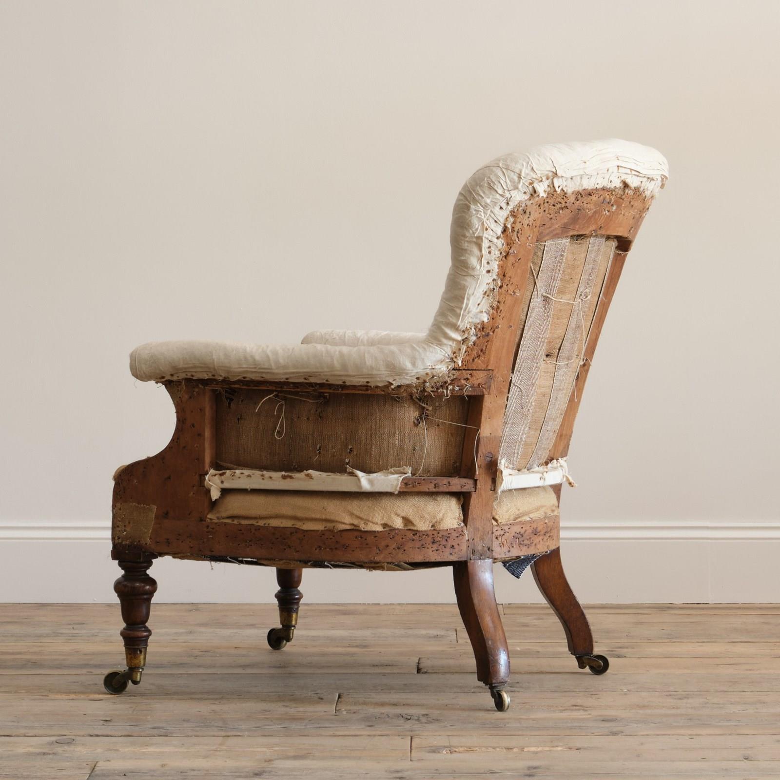 A good quality mid 19th century country house armchair. Raised on oak legs and brass casters. In the manner of Holland & Sons c1850