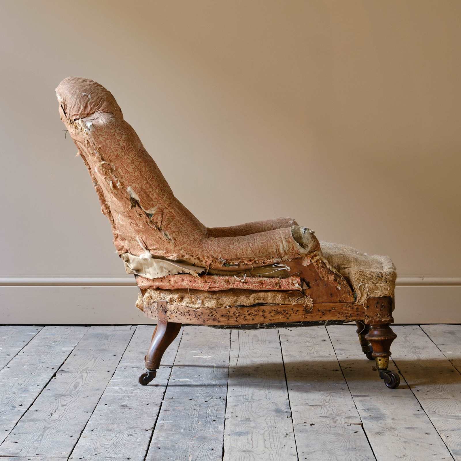 Overall in good condition. There are a few loose joints on the back that will be restored during upholstery.