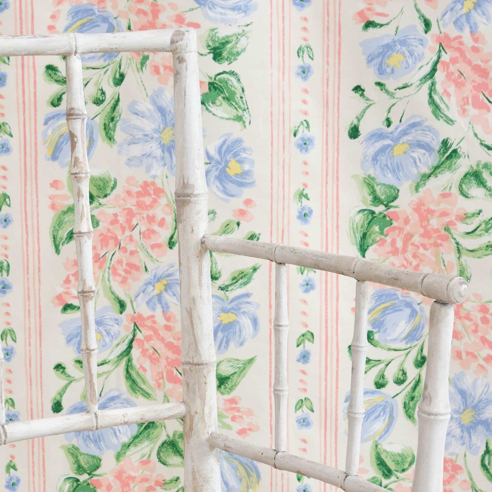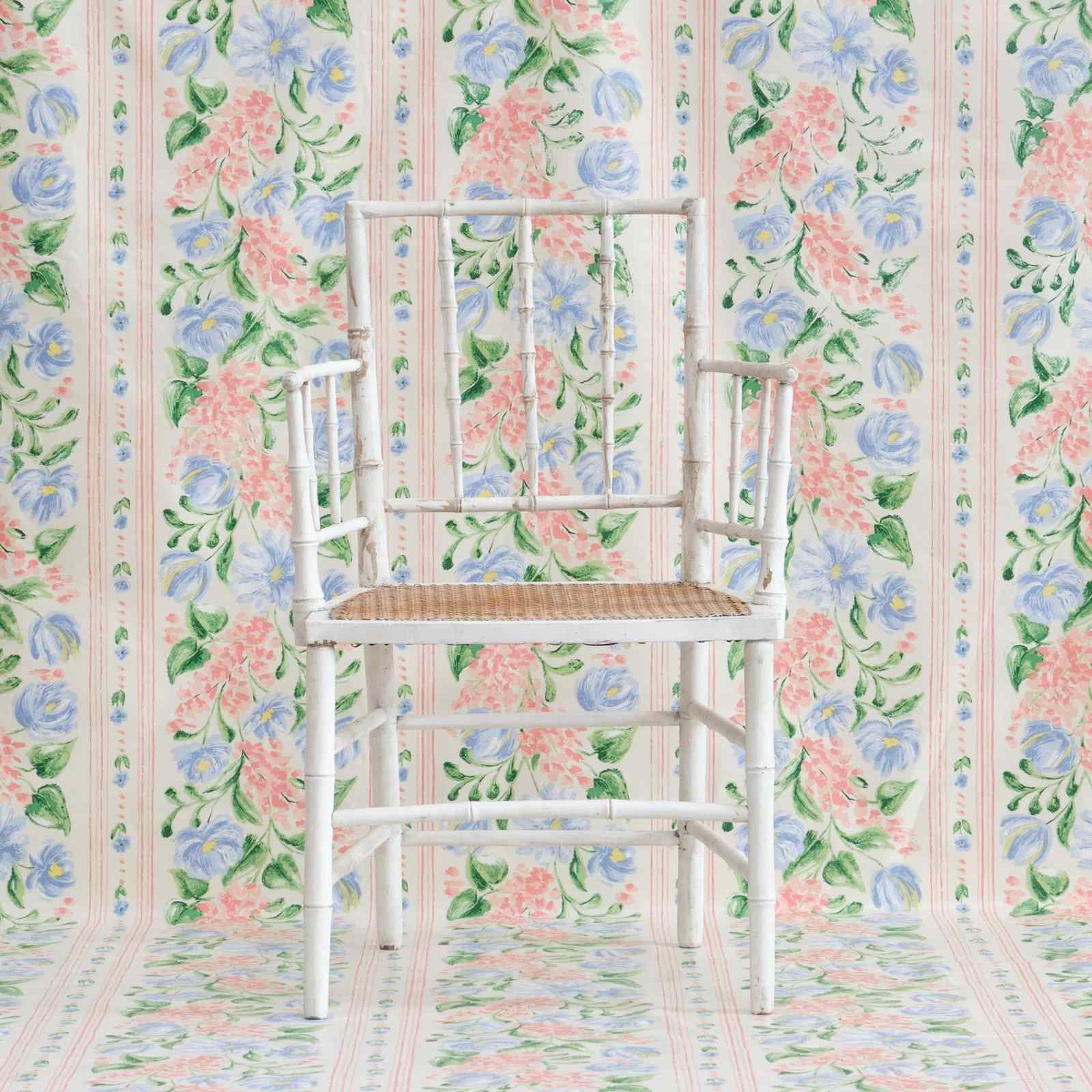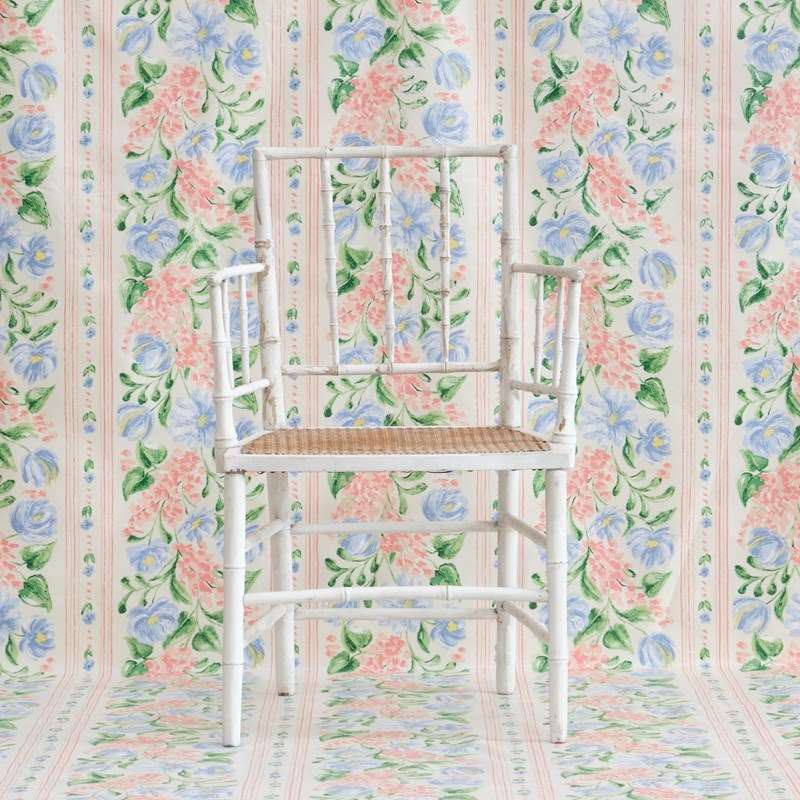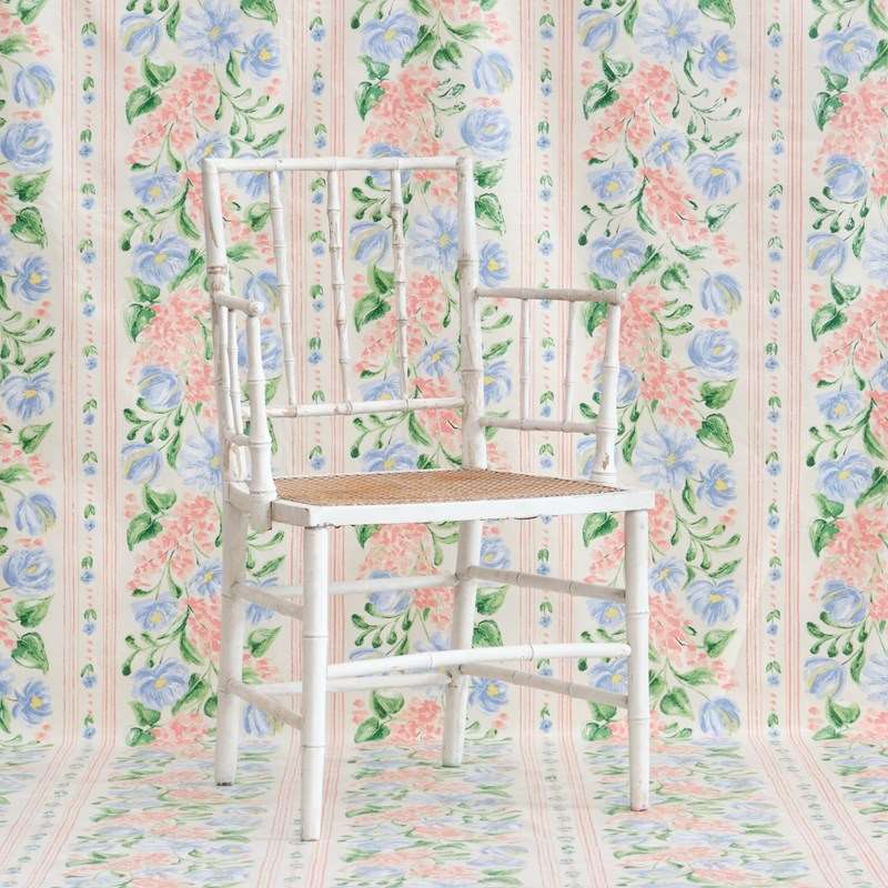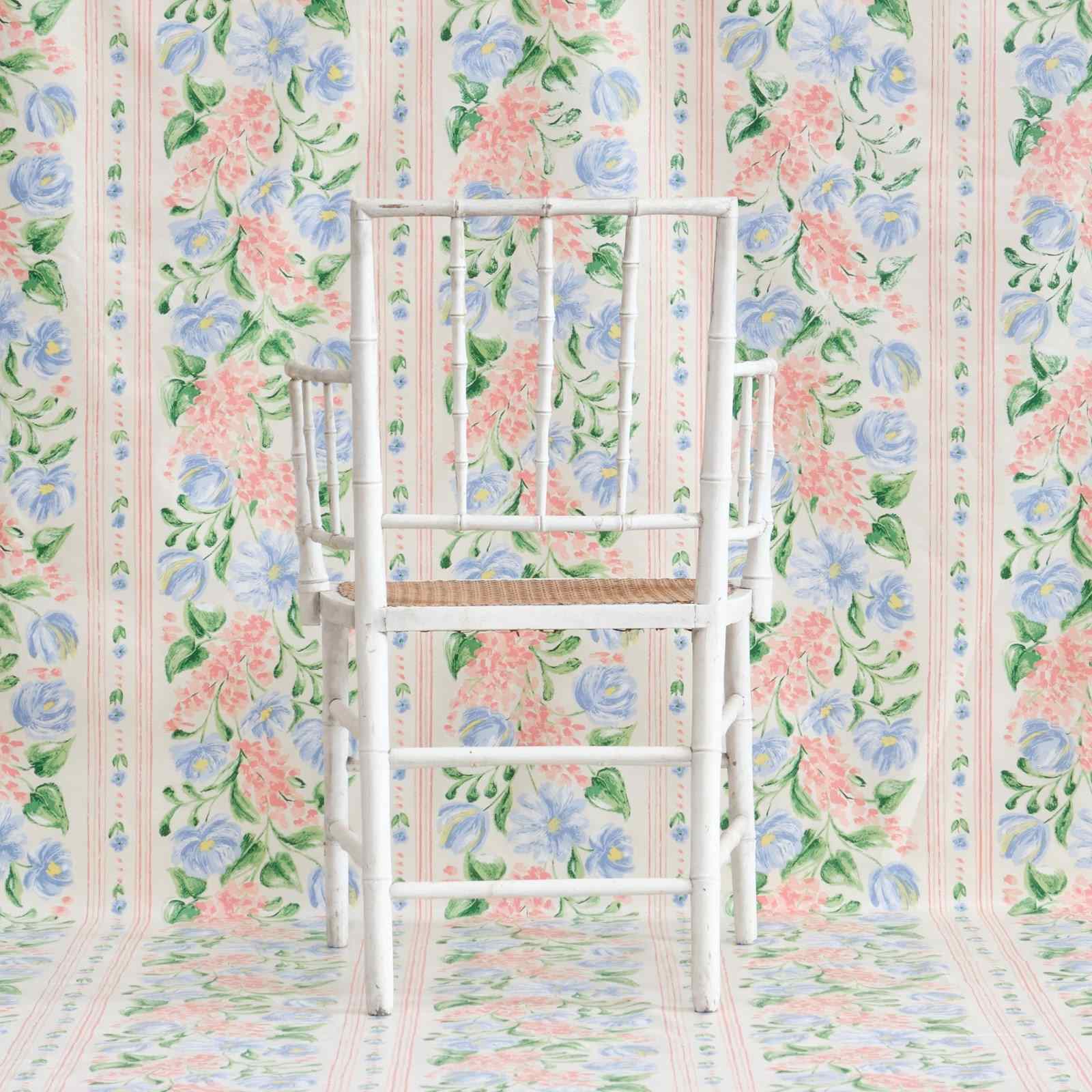 A 19th century armchair in turned faux bamboo beech with worn later paint and rattan seat.