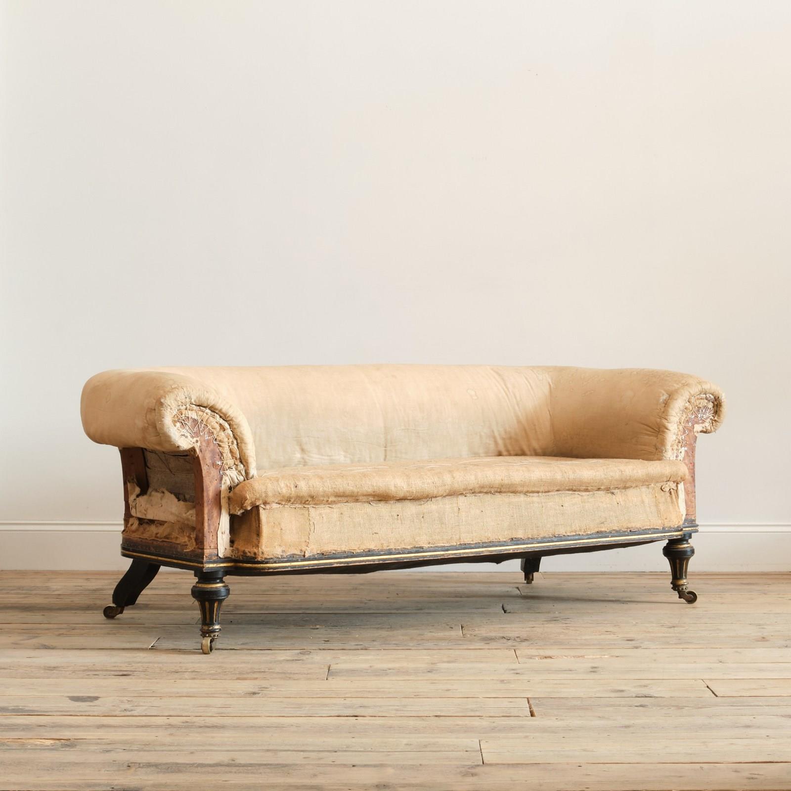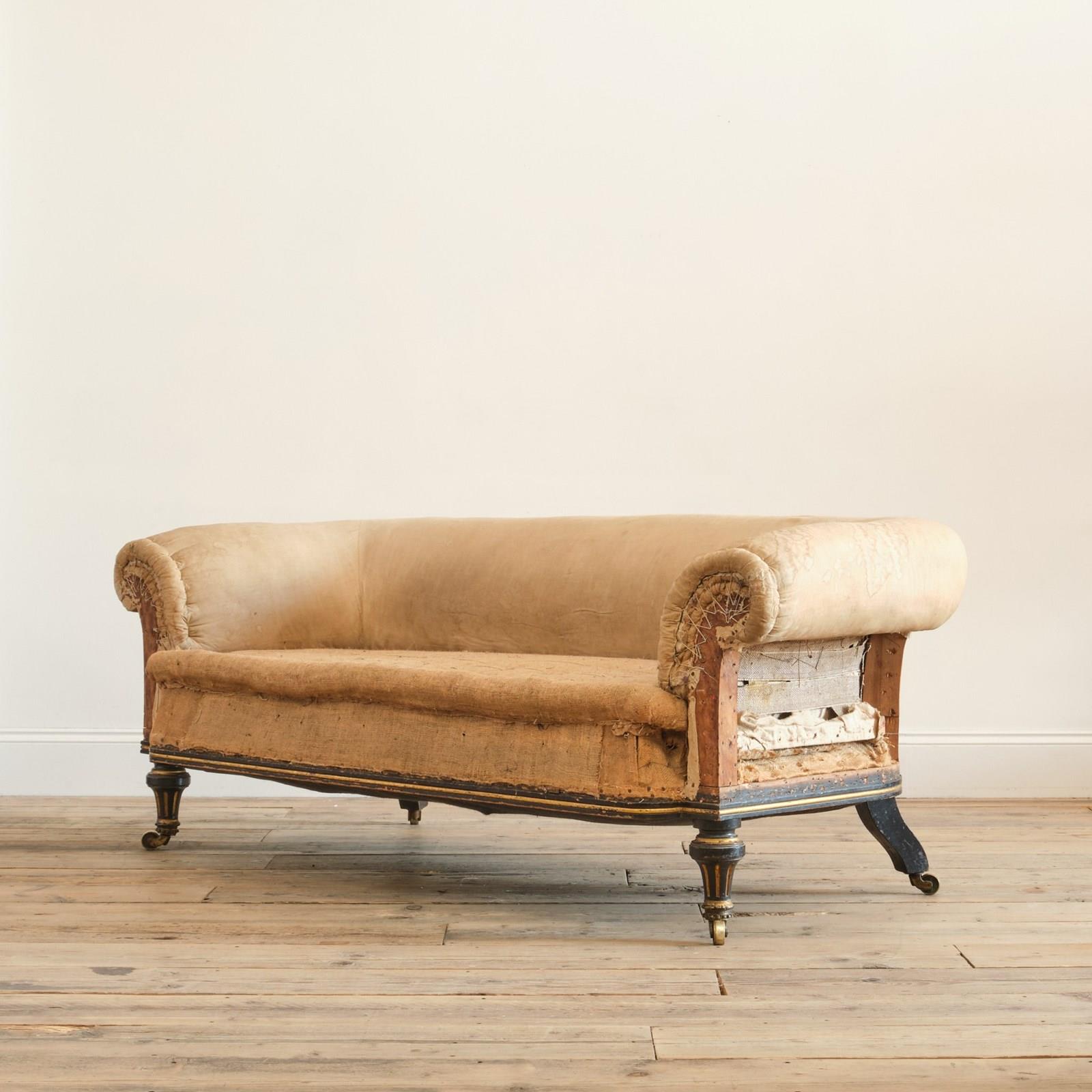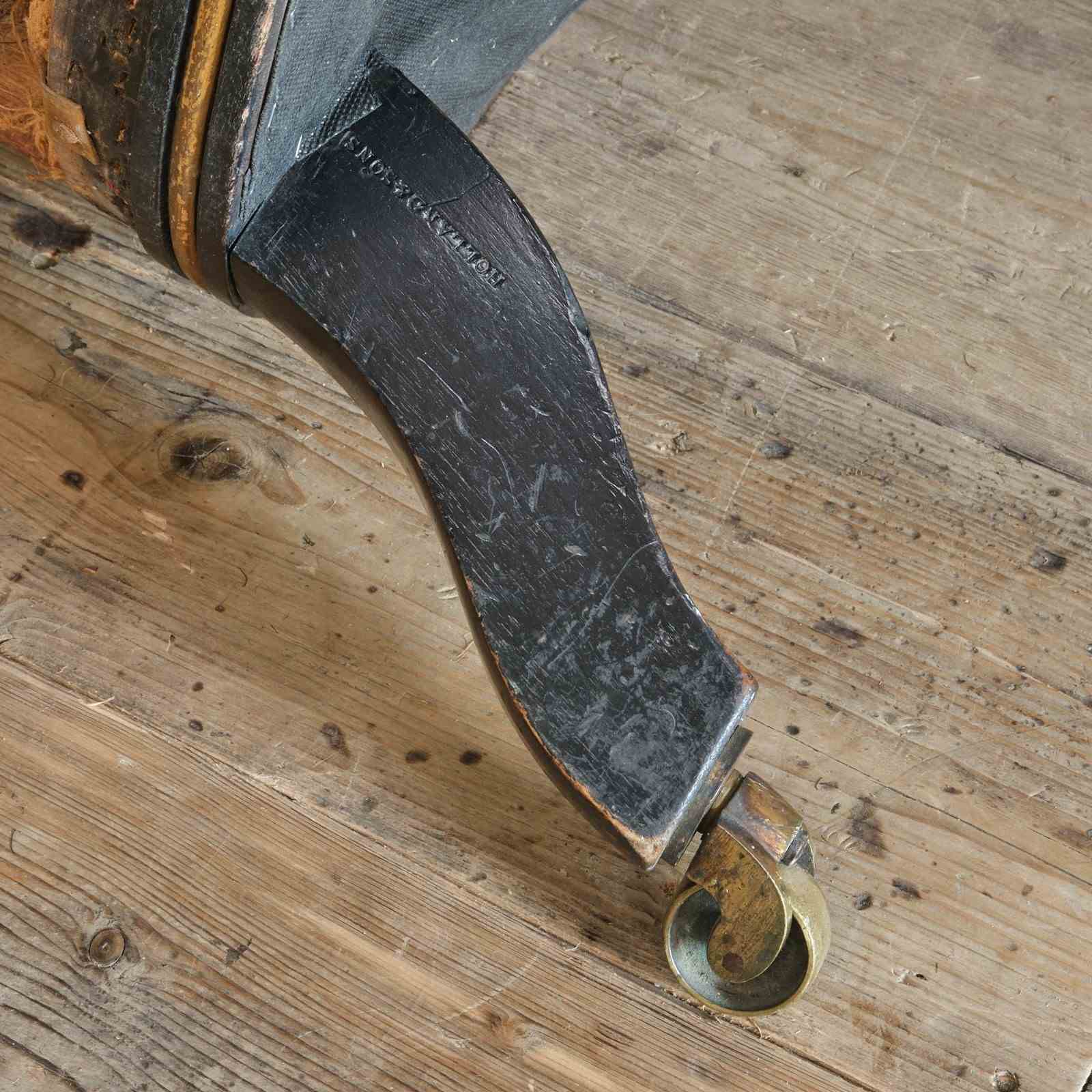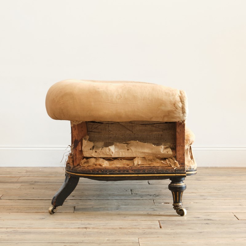 Structurally in good solid order and retaining the original upholstery to the sprung arms and back. The seat is a more recent replacement.