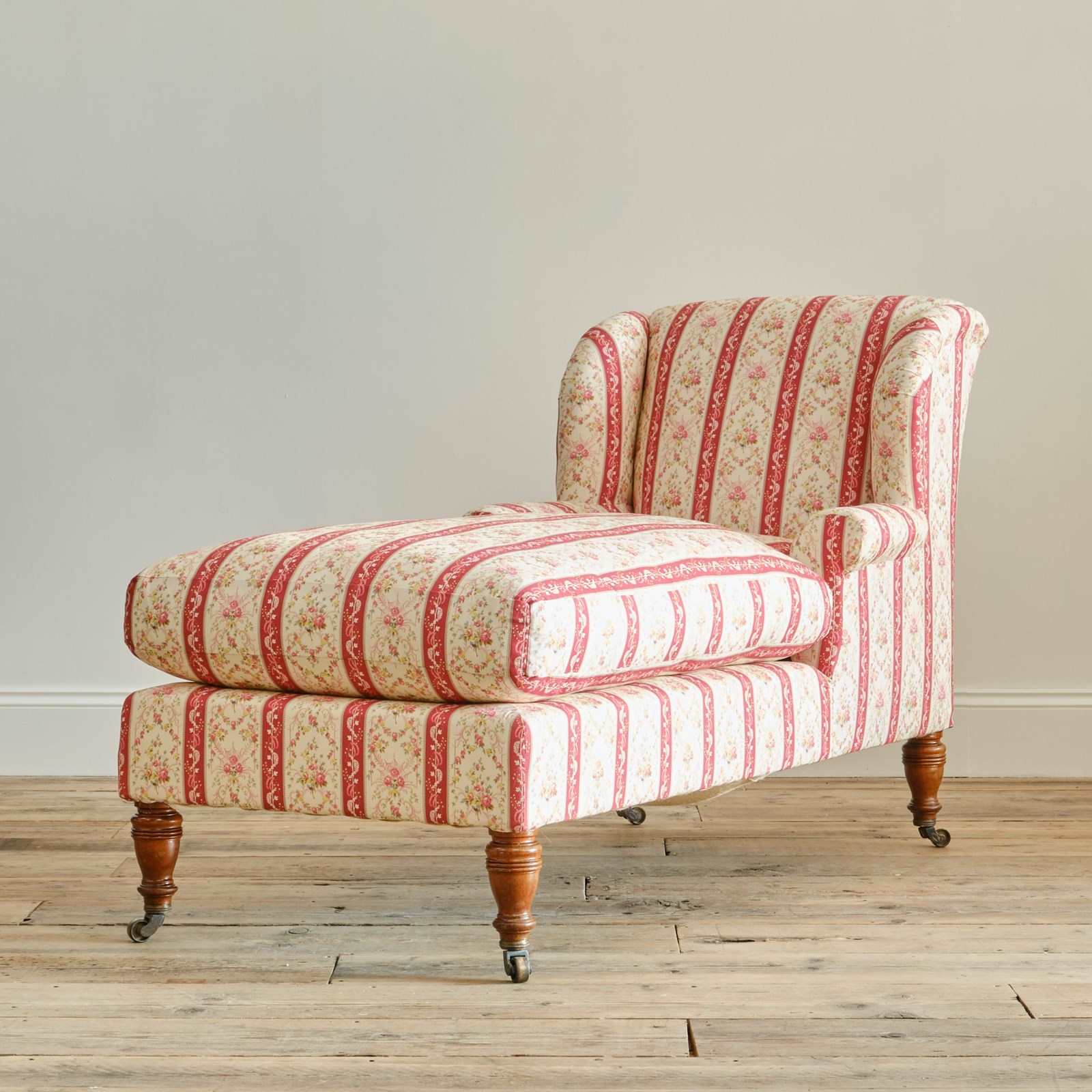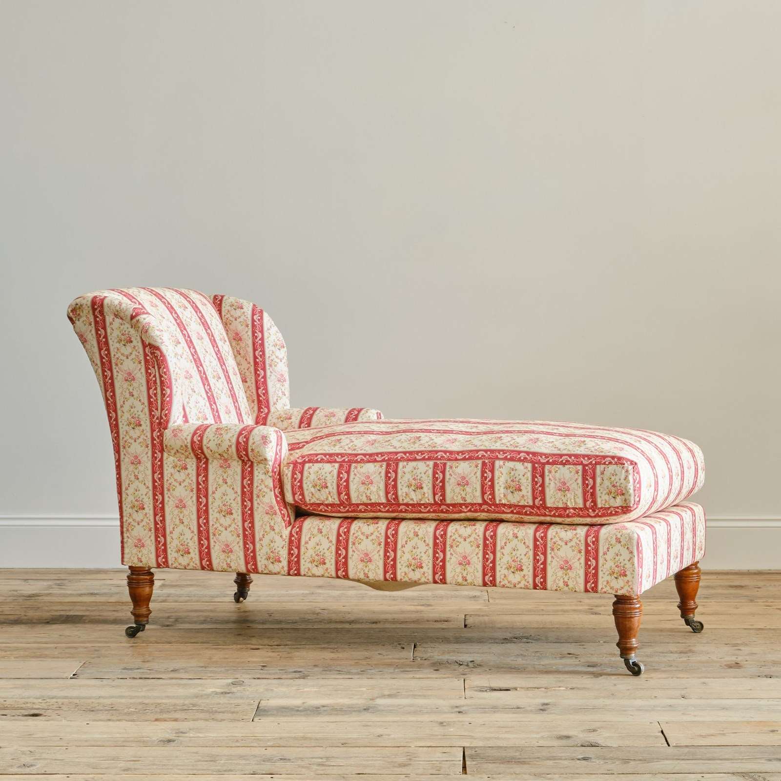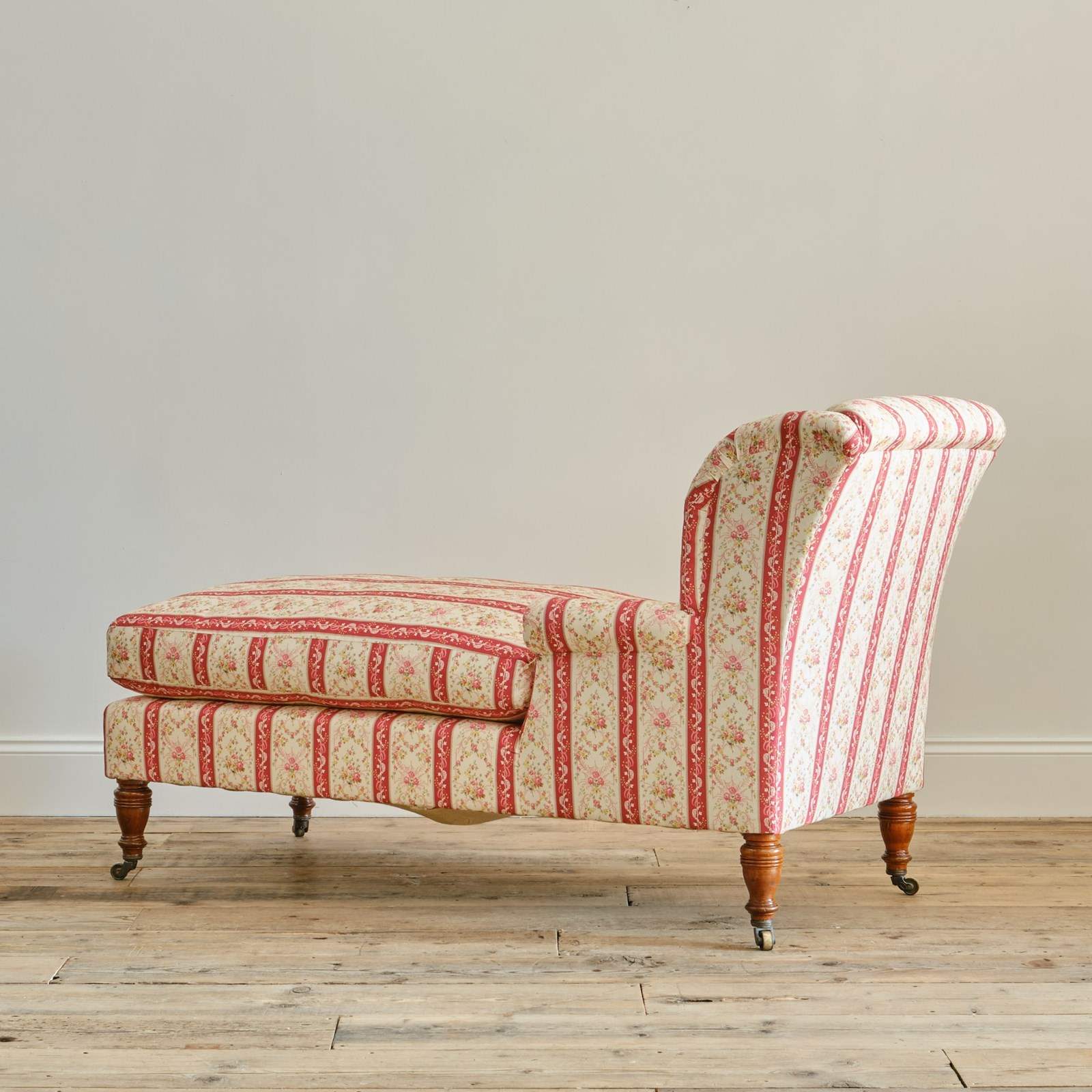 A 19th century daybed by Howard & Sons - London. Raised on 4 turned walnut legs with the original Stamped casters and the left back leg bearing the stock number 14325-2424.
