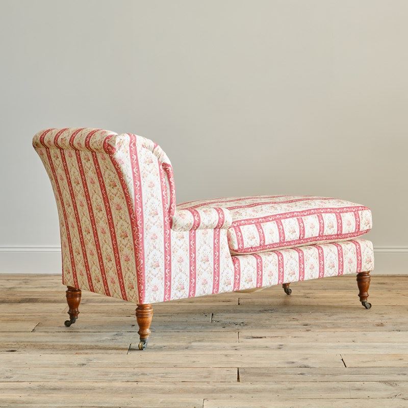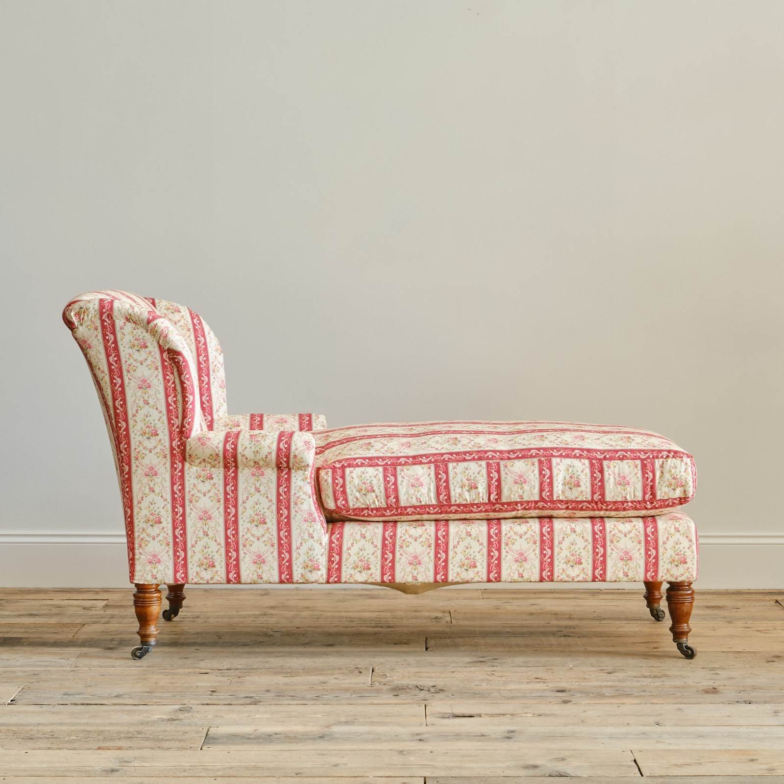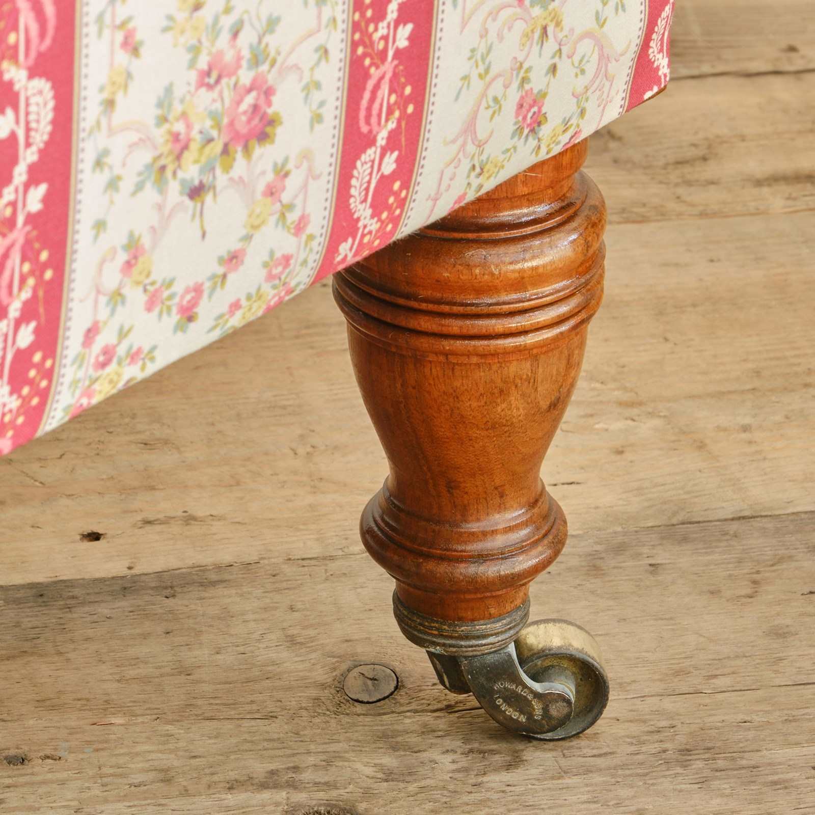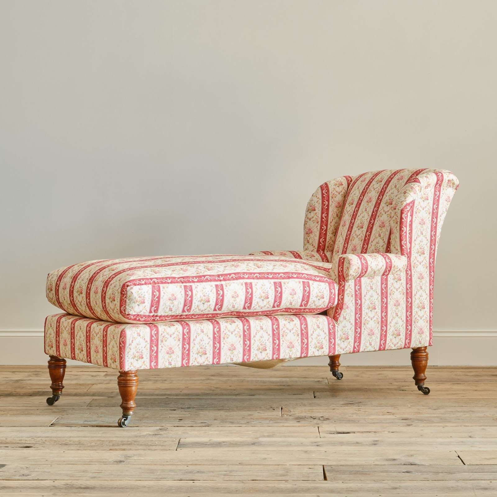 A 19th century daybed by Howard & Sons - London. Raised on 4 turned walnut legs with the original Stamped casters and the left back leg bearing the stock number 14325-2424.