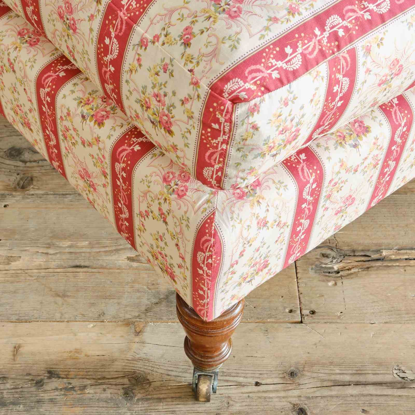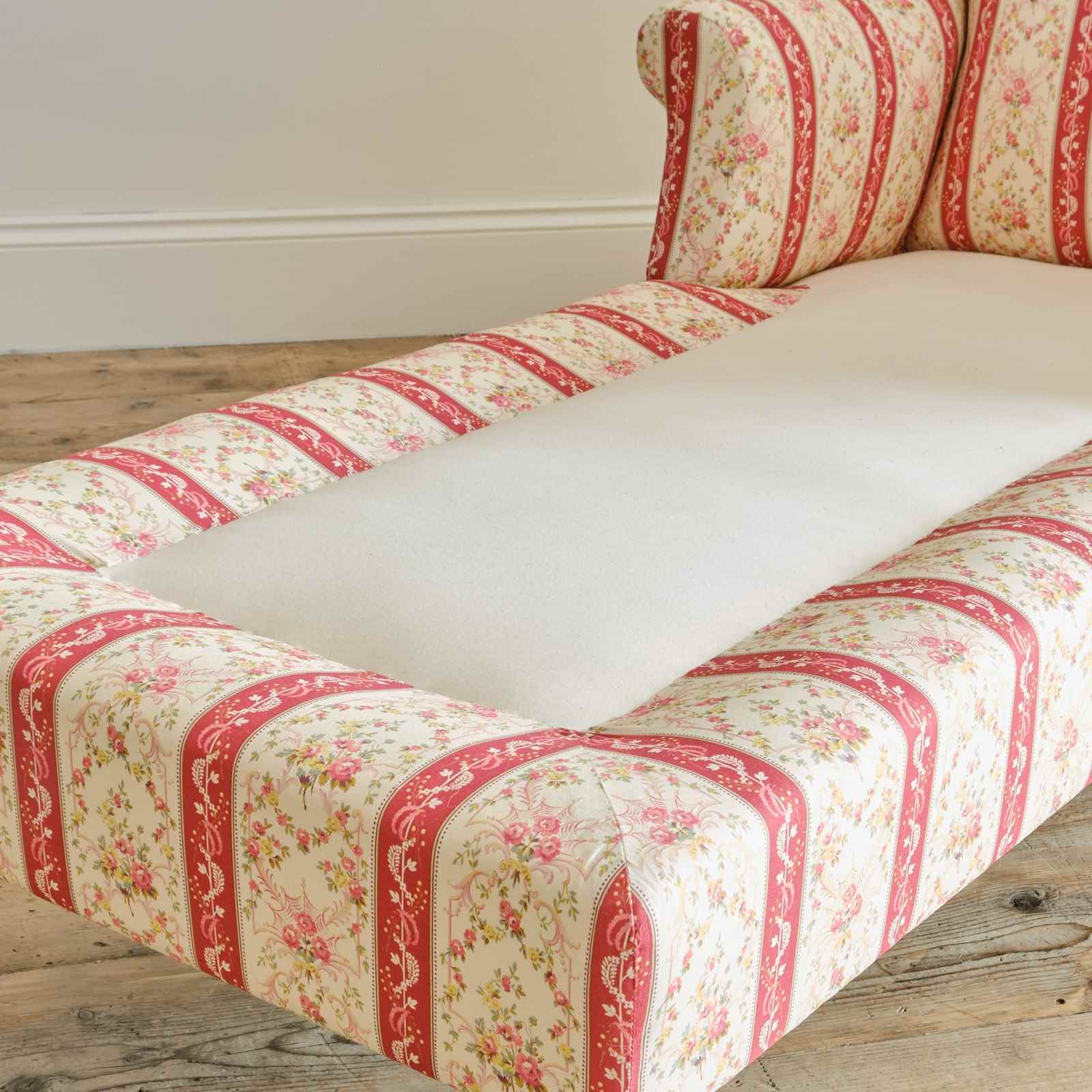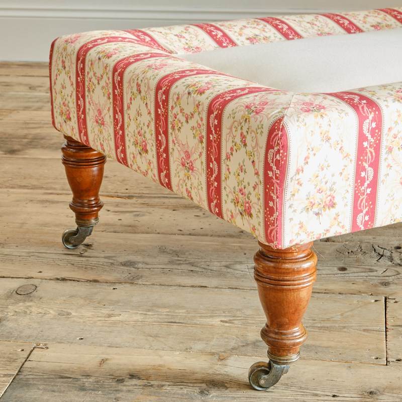 Expertly upholstered and retaining much of the original factory fillings. The seat has been fully restored with new springs with the original horsehair being reworked. The seat also boasts a new thick, comfortable feather and down seat cushion. We opted for the red striped H&S cotton lining for a more refined look. It's finished ready to use as is however if you would like a top cover of you choice this is something we can arrange.