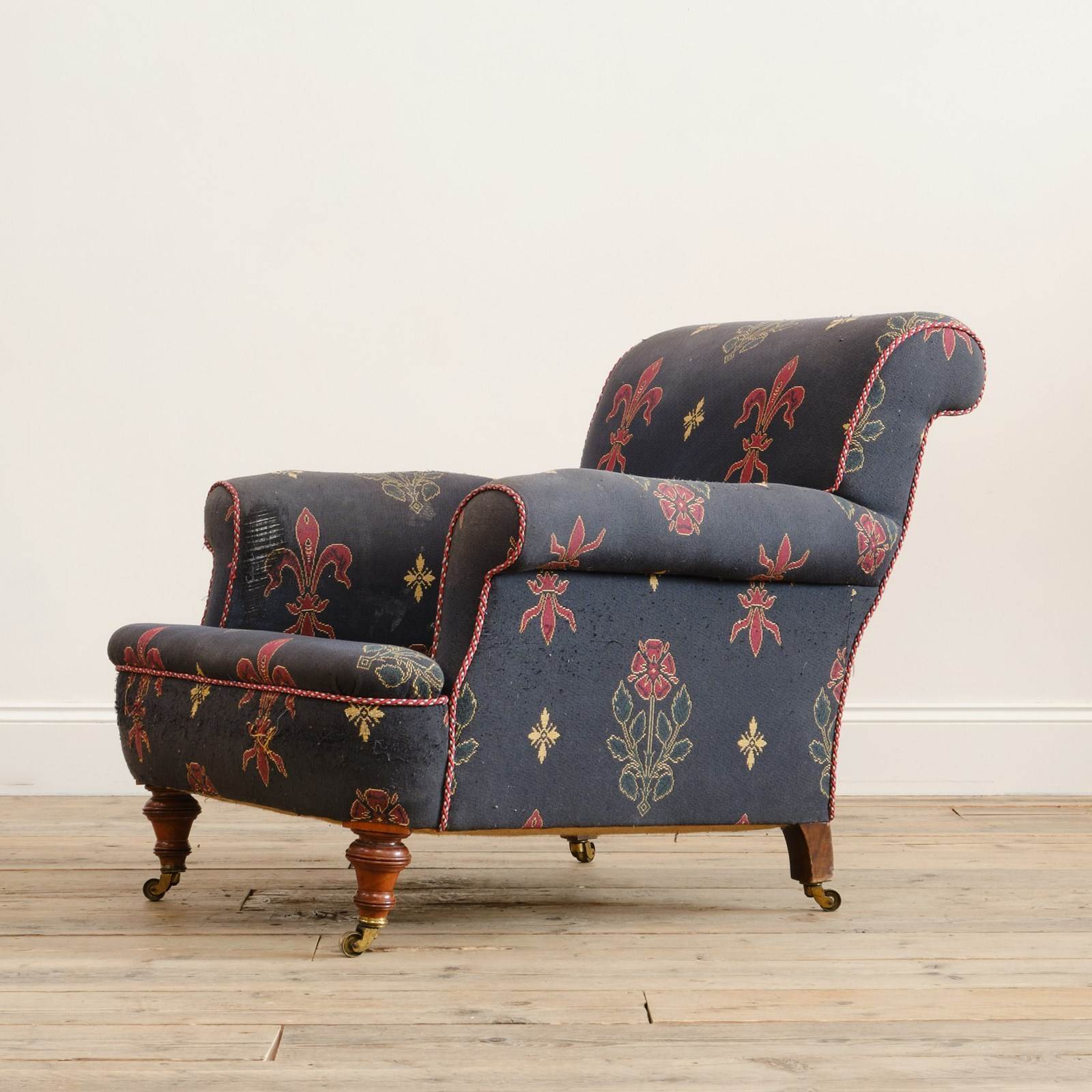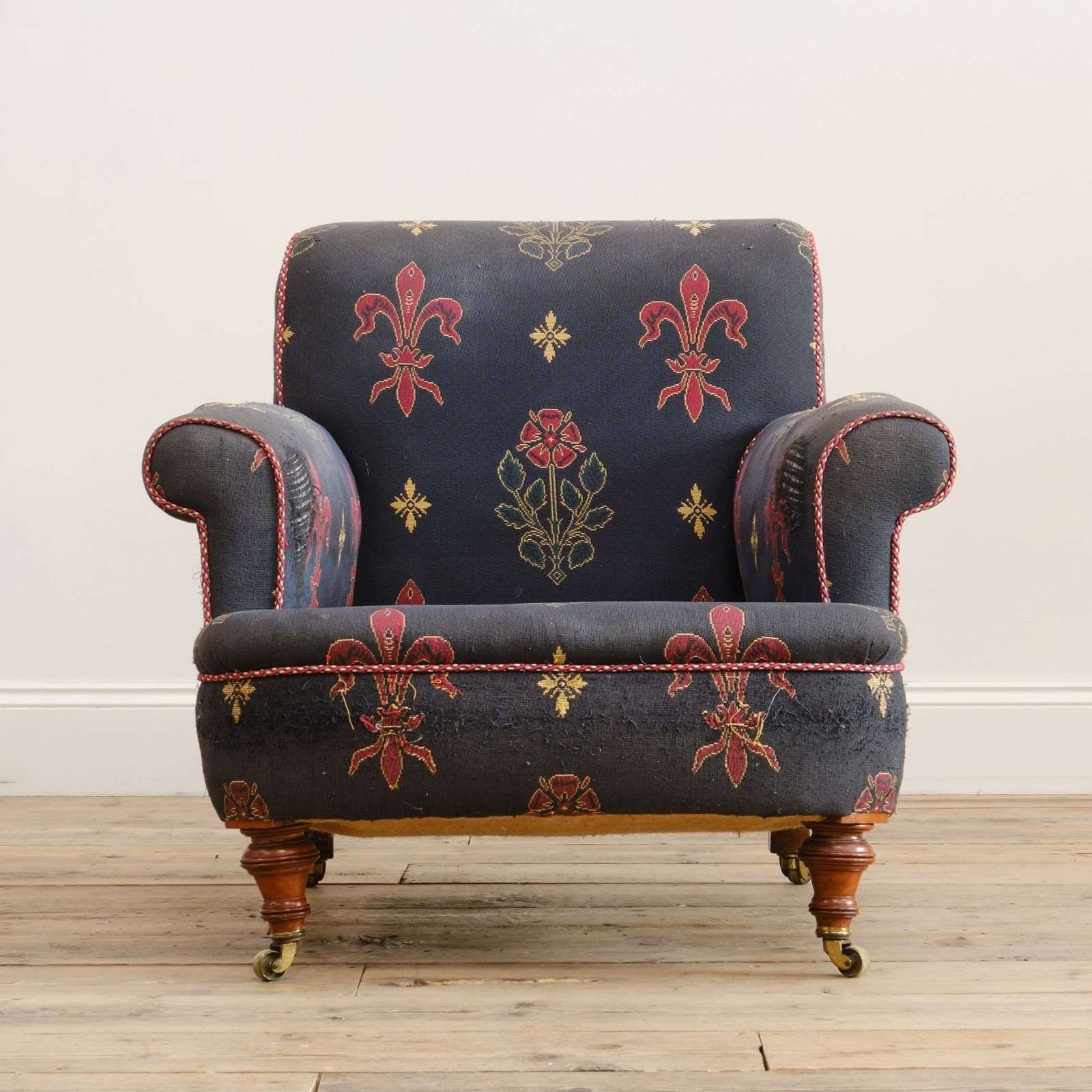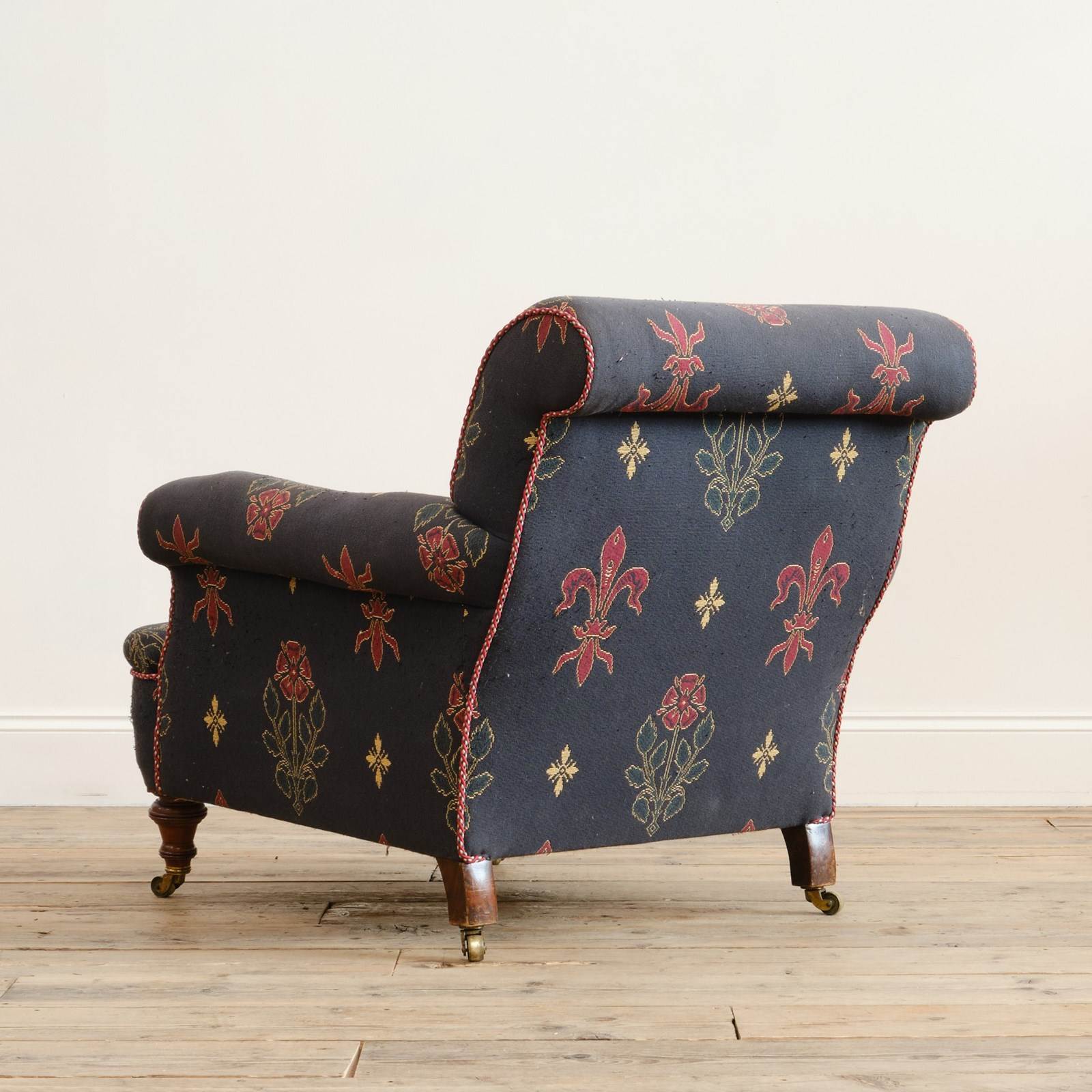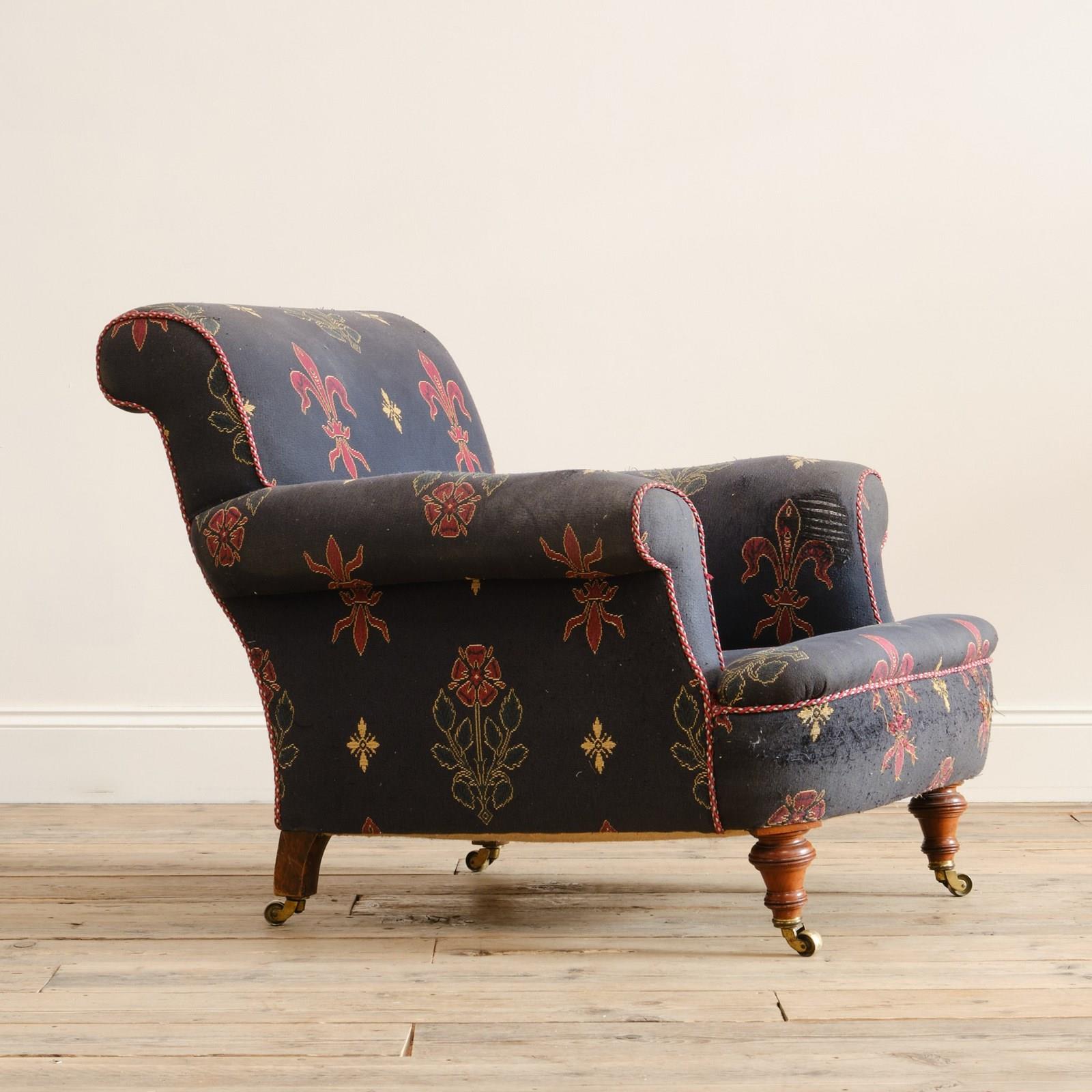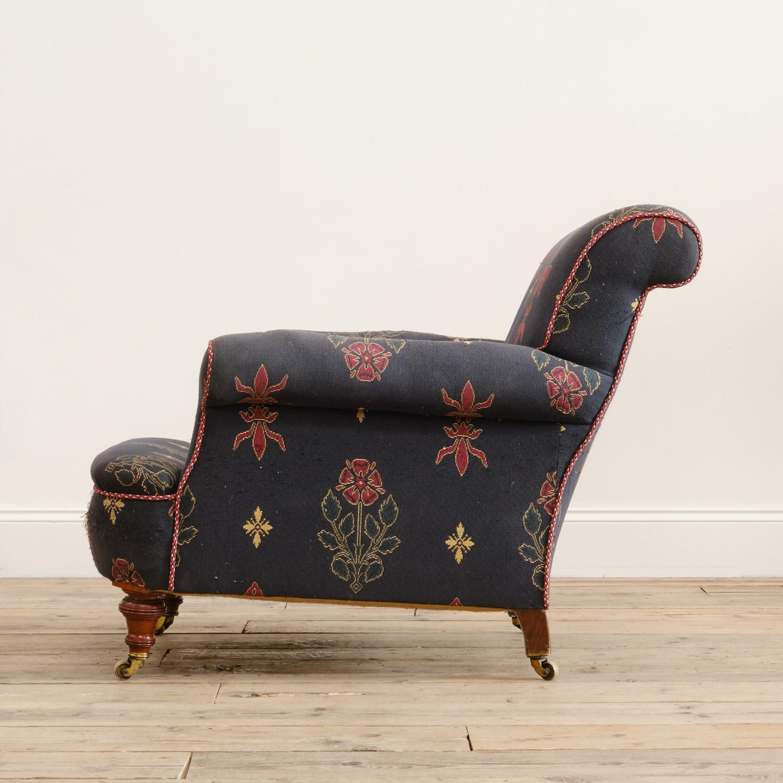 A 19th century country house armchair by John Taylor & Sons of Edinburgh. Raised on walnut legs and the original casters.