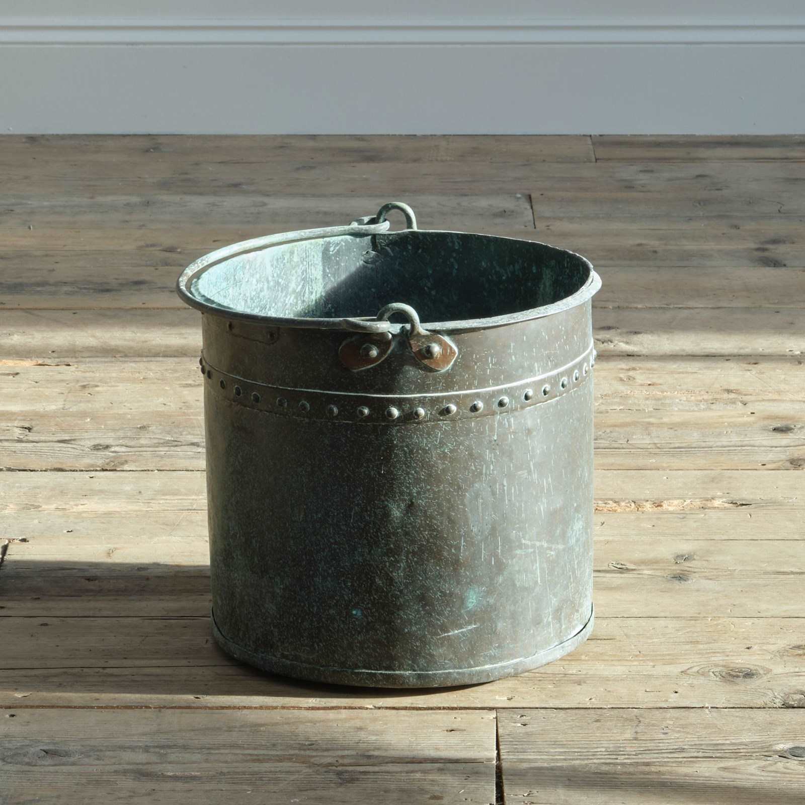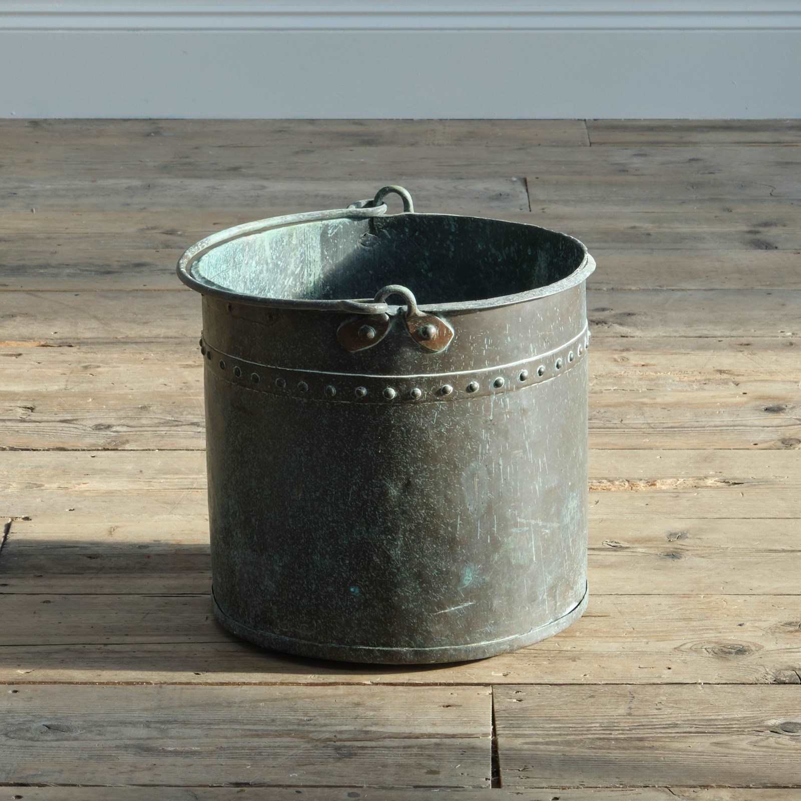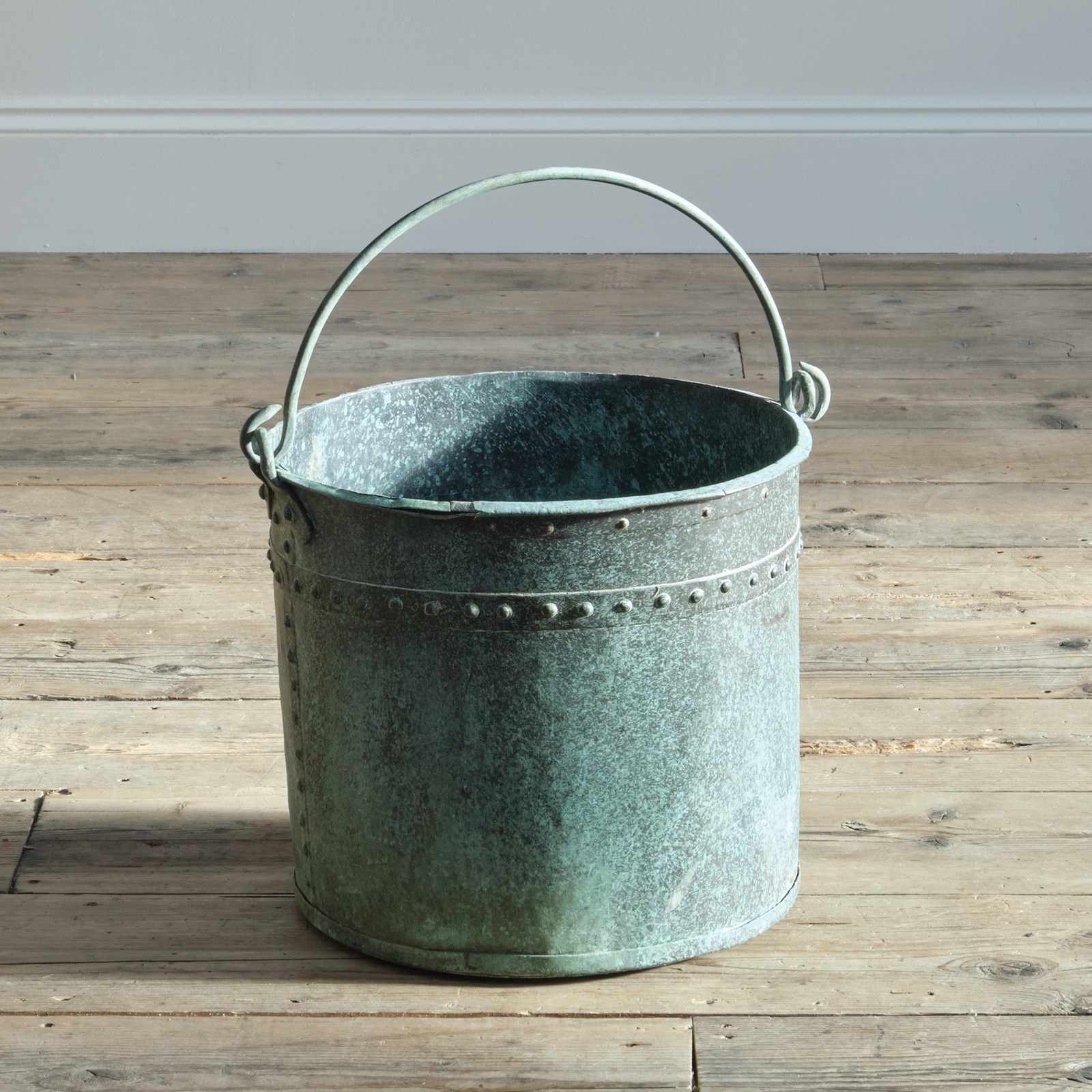 A 19th century Copper bucket with an attractive Verdigris patinated finish. These buckets make great planters for the garden or interior of your home or log bins for the fire.